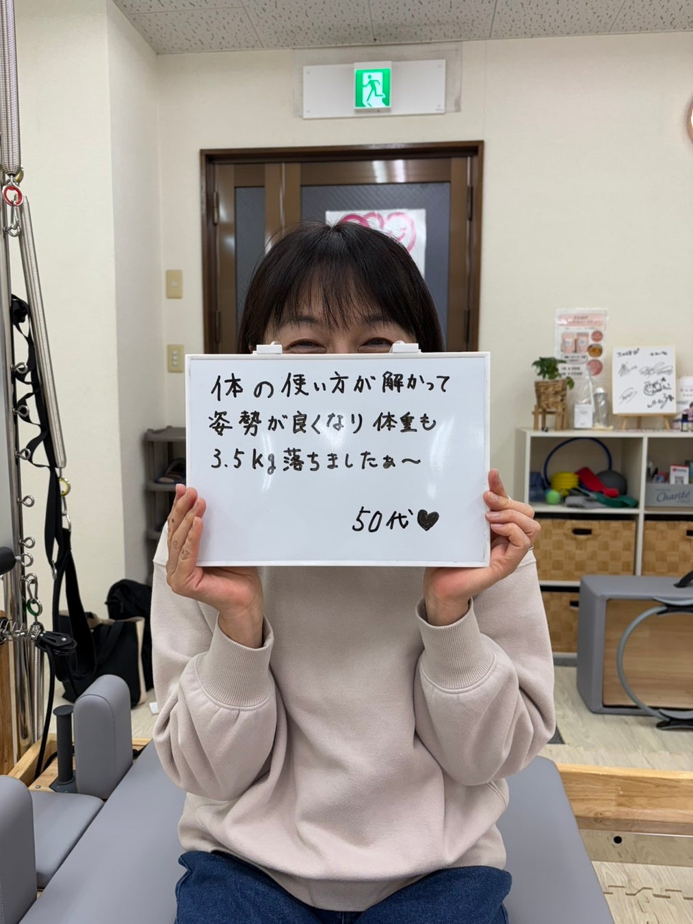 パーソナルに通って体の使い方を細かく教えていただけた事で、姿勢が良くなり体の不調を感じにくくなりました。