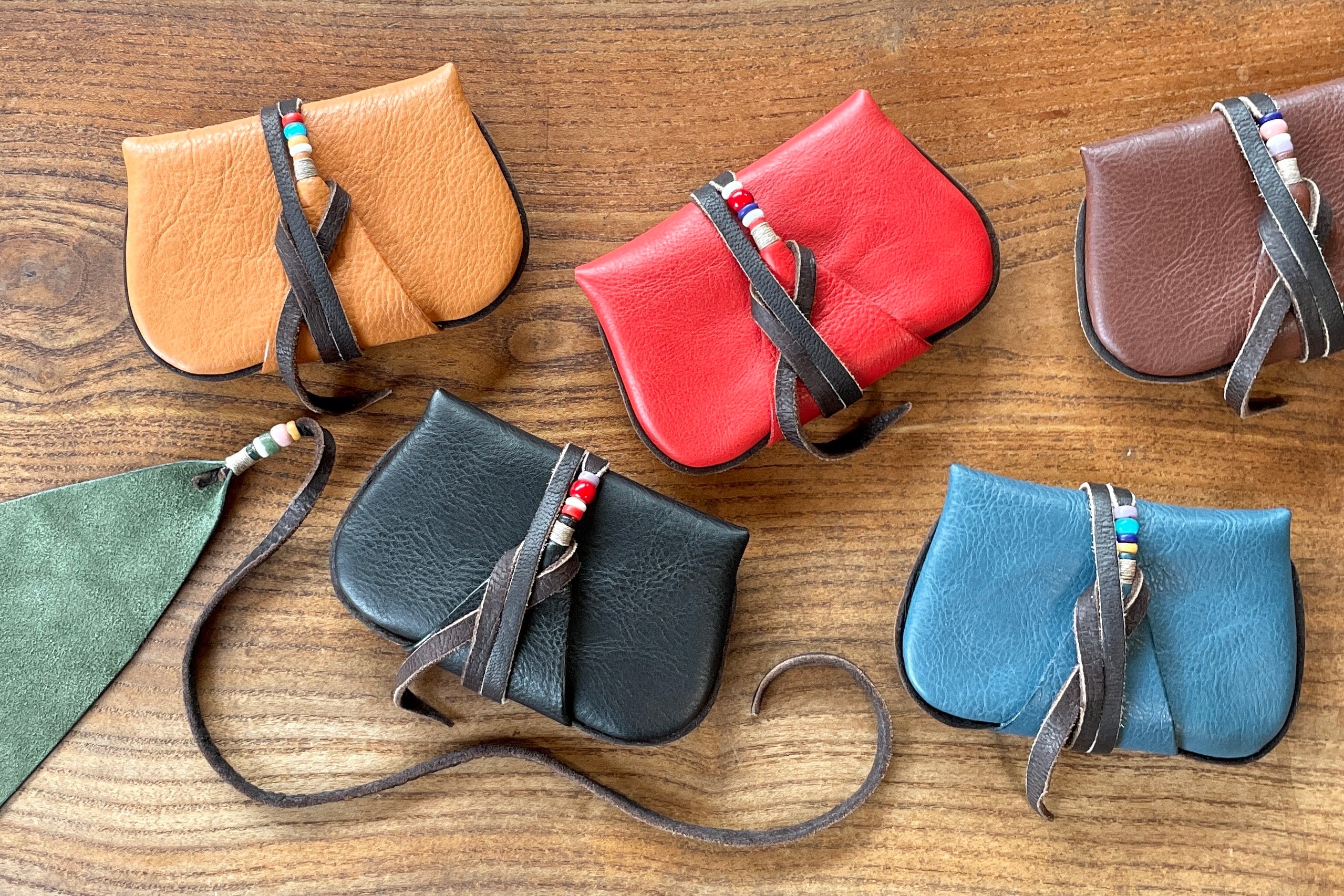 ネックレスやバッグチャームにもなる、ヌメ革製のチャームです。