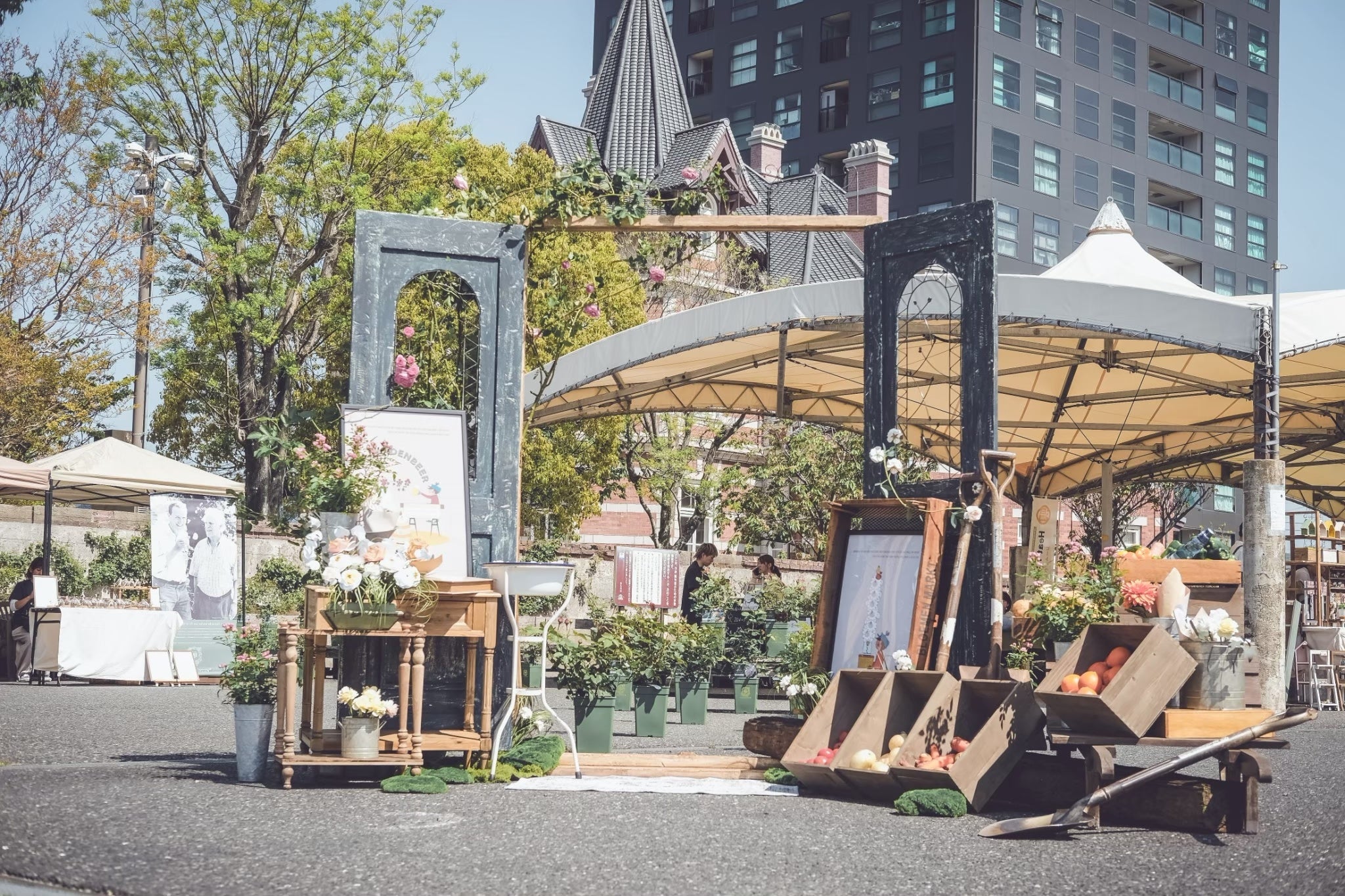 まるで海外のガーデンマーケットのような空間で、薔薇を中心としたガーデニング、ペット、各種ワークショップなど約30のコンテンツが集結します。