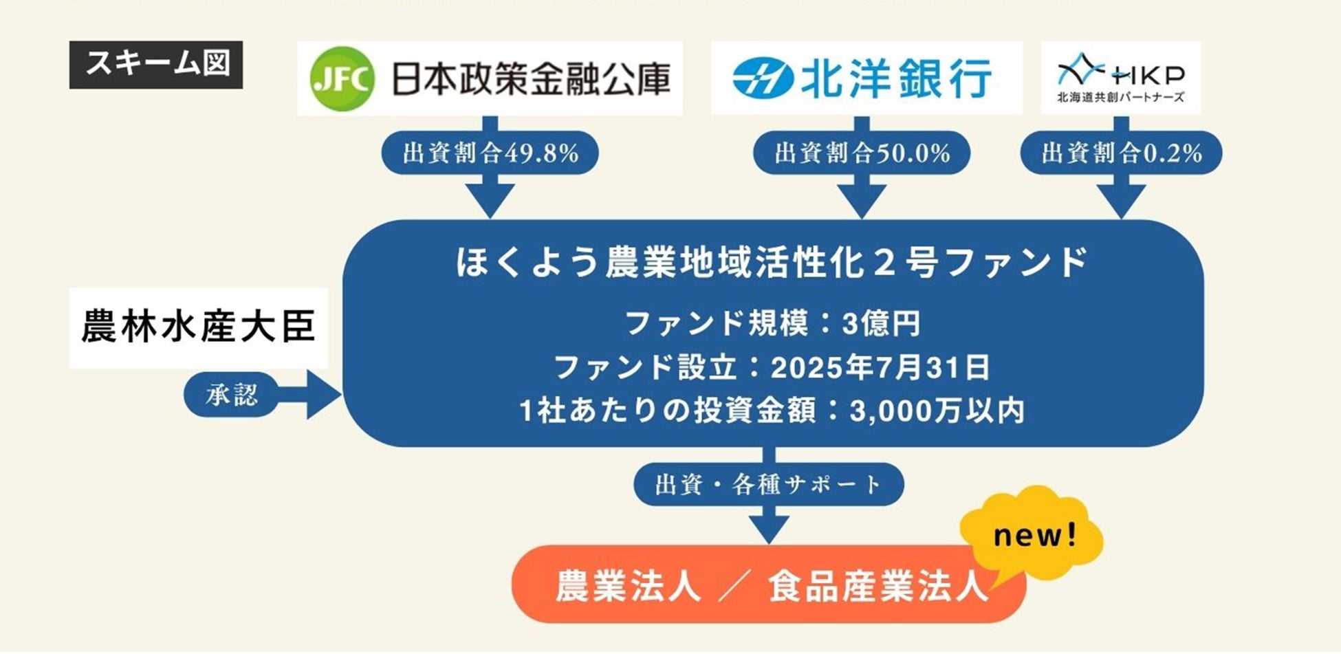 また北洋銀行は、従来の農業法人への出資に加え、農業・畜産業を支える「食品産業法人」まで対象を拡大し、北洋グループ一体で経営面も含めた包括的な支援を進めています。