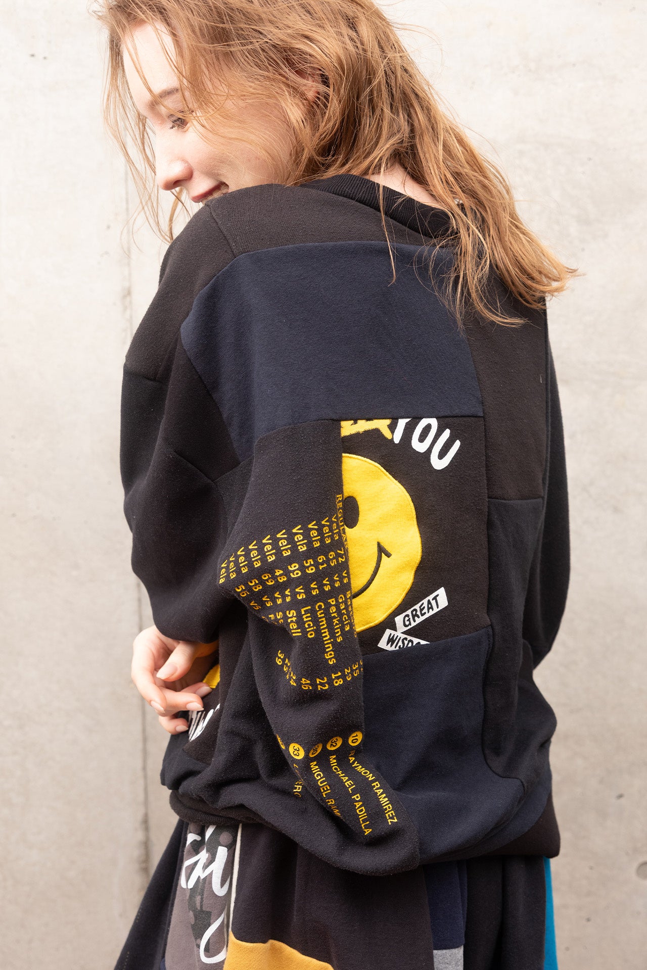 商品は、ステッチやペイント、カラフルなパッチワークを組み合わせたユニセックスのリメイクアイテム。どなたでも着やすく、身につけることで楽しい気分になれるような服づくりを行っています。