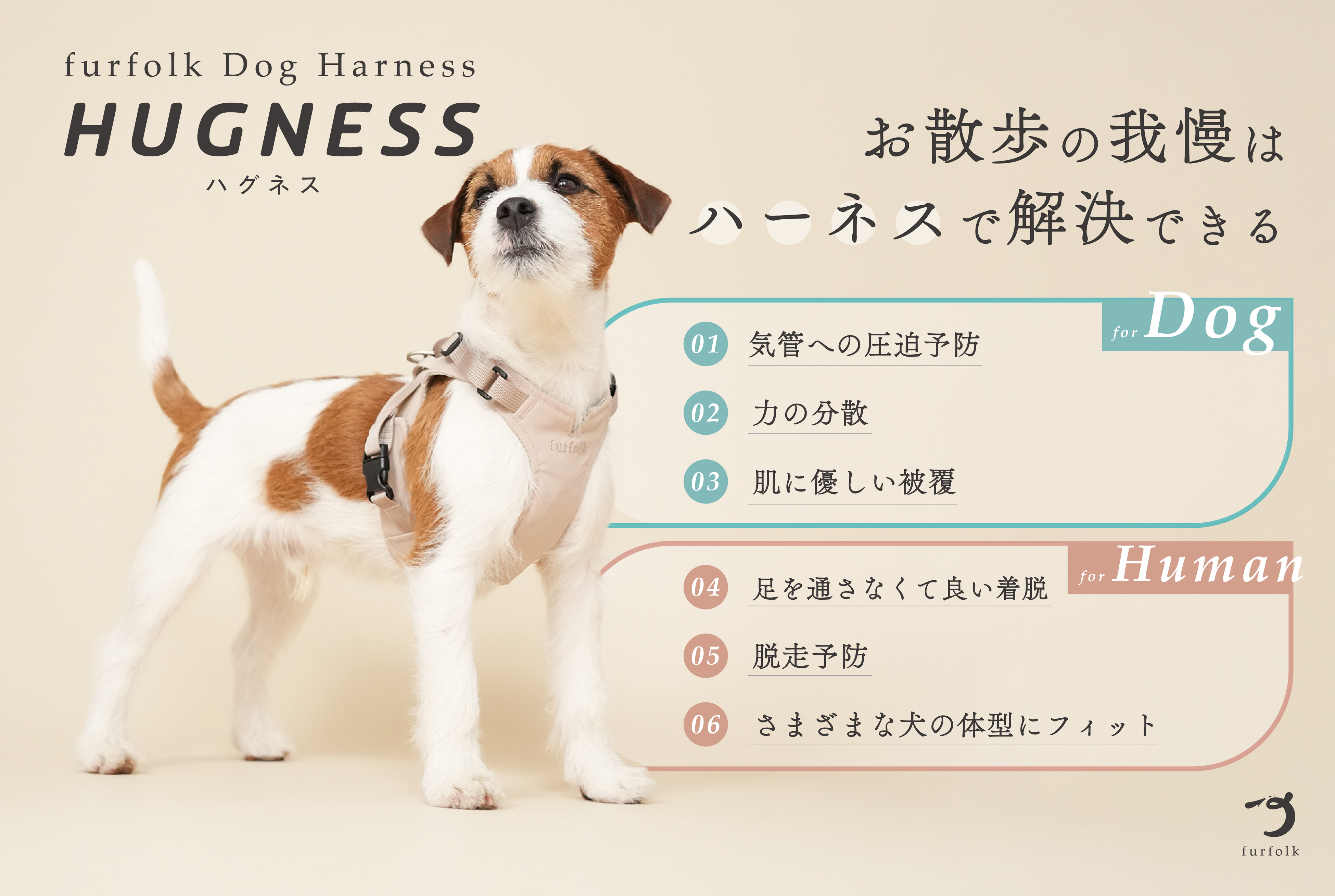 [ CAMPFIREにて先行予約受付中! ] furfolkより、犬にも人にも優しい革新的ドッグハーネス【HUGNESS(ハグネス)】誕生。お散歩をもっと楽しく、心地よく。