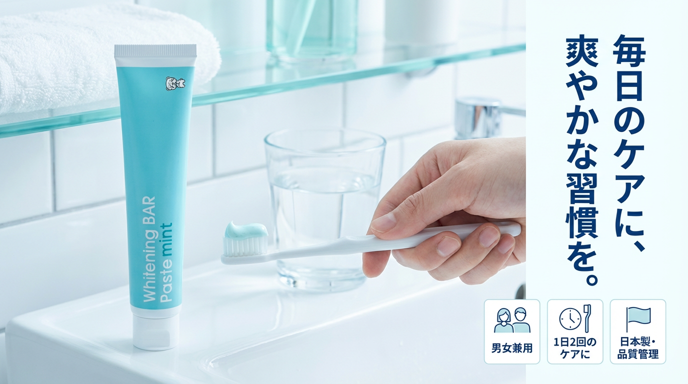その課題に向き合い、「毎日の歯みがきを前向きな習慣へ変える」ことを目的に開発されたのが「WhiteningBAR Paste Mint」です。