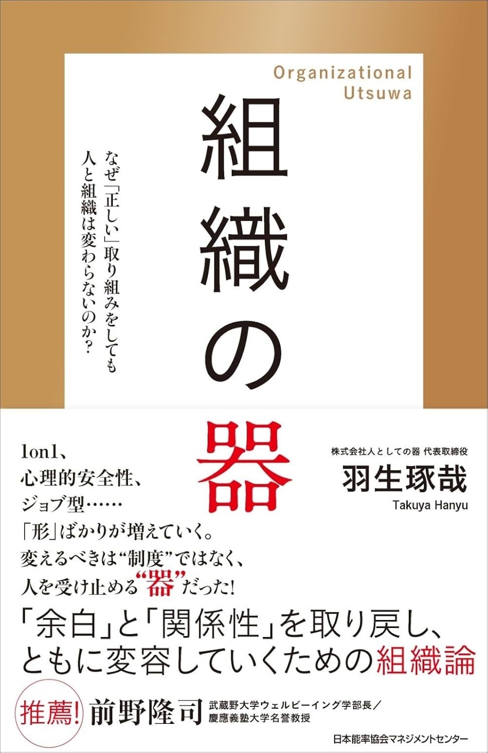 株式会社人としての器(所在地:神奈川県横浜市)の代表取締役である羽生琢哉の初著書『組織の器 なぜ「正しい」取り組みを導入しても人と組織は変わらないのか?』が、2026年4月22日に株式会社日本能率協会マネジメントセンターより刊行されます。