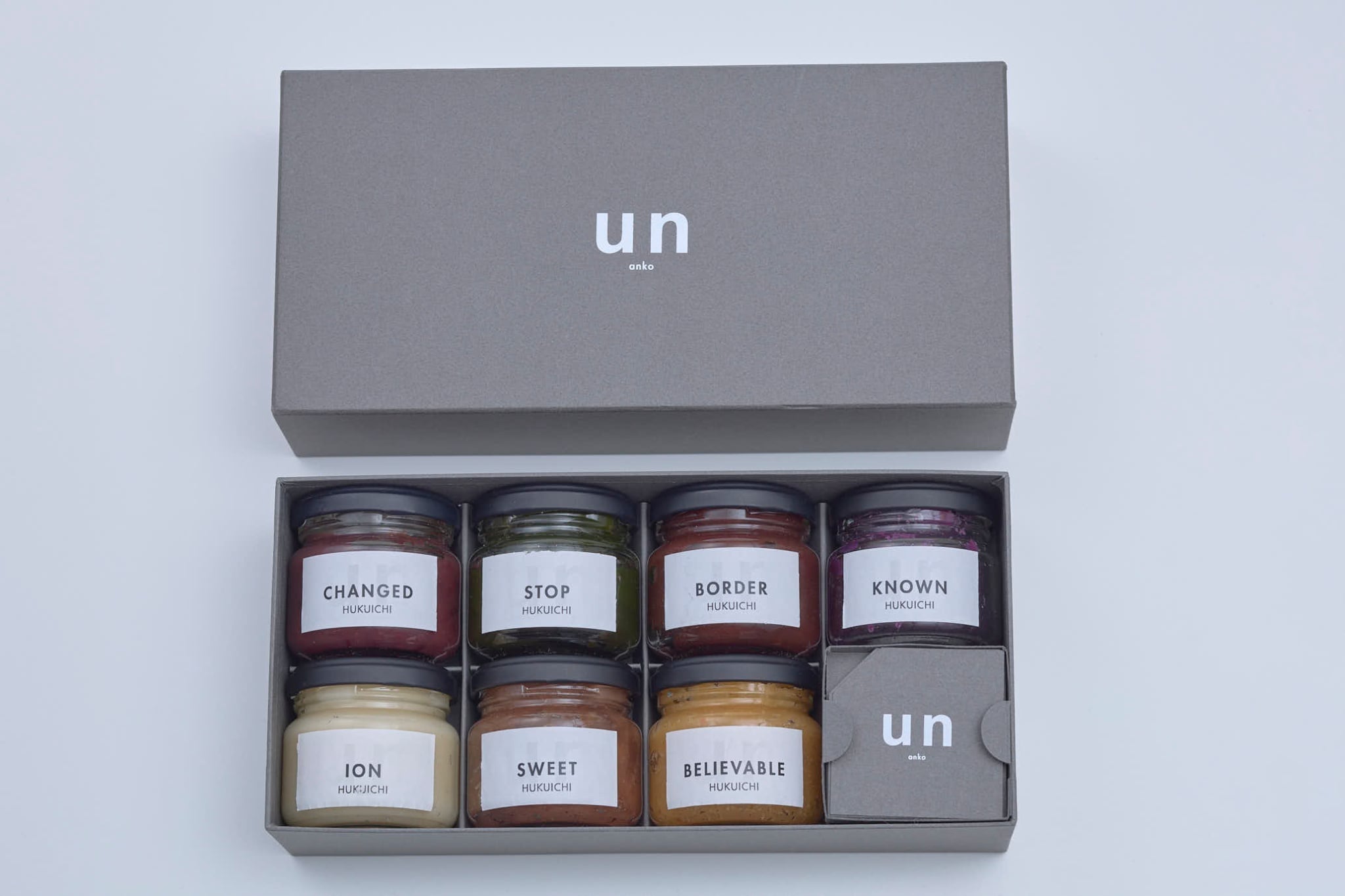 「un」は、あんこの当たり前を見つめ直すための”小さな否定”。これまでのあんこの価値を見つめ直し、「主役として楽しむ」ことを前提に再構築したブランドです。素材と向き合い丁寧に炊き上げたあんこをそのまま味わい、そして組み合わせて楽しむ、新しい体験を提案します。