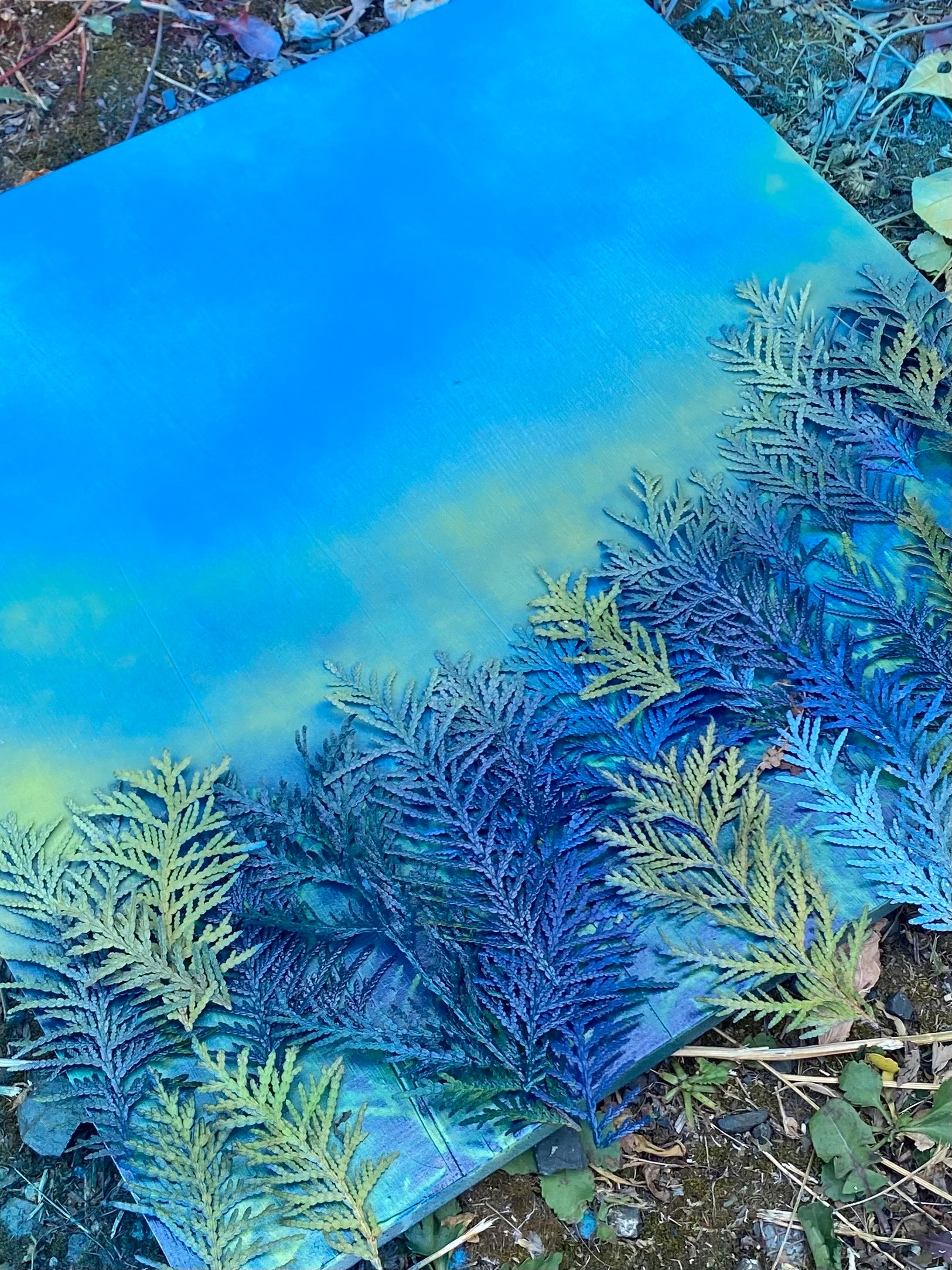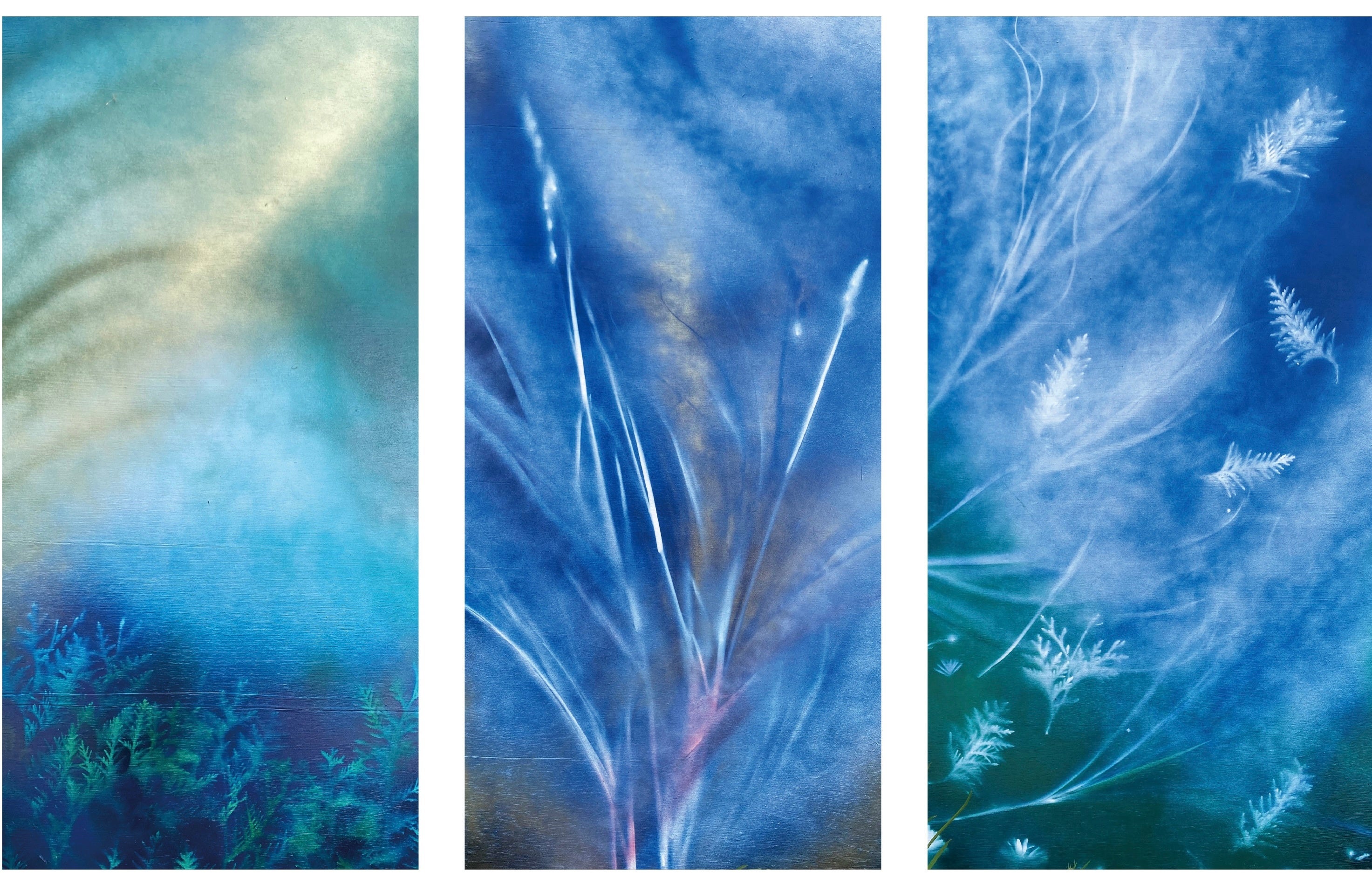20代から絵を描きながらも自然の美しさに勝るものはない、かなわないといつも感じていました。それならばいっそ自然のもつ美しさをそのまま絵に写しとれないか、という発想から生まれました。足元に自生する草花や、やがて剪定される運命にある枝葉。