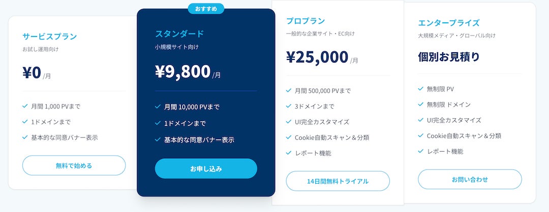 ¥9,800/月(月間10,000PVまで) |