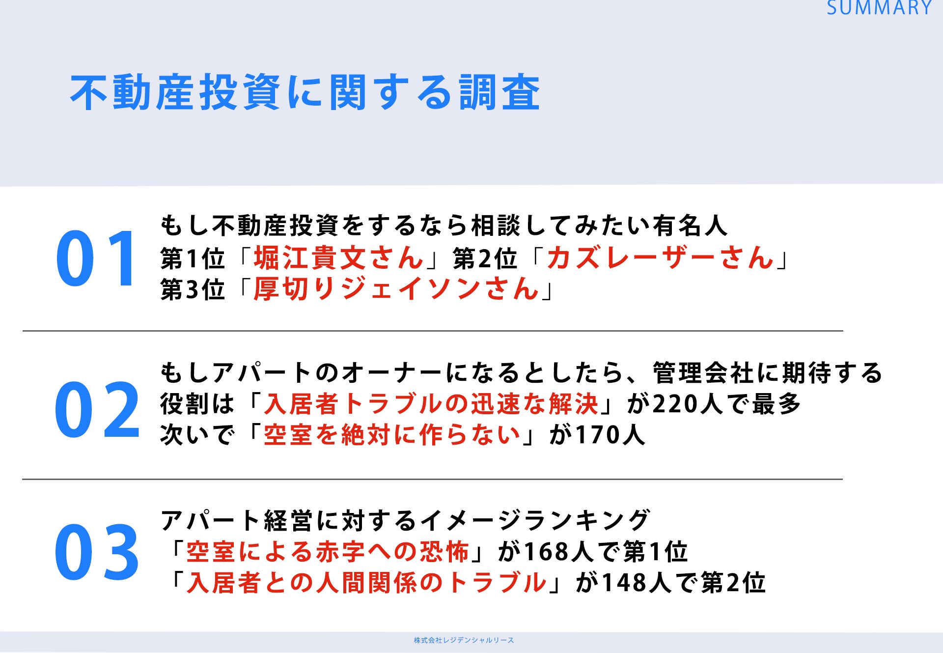 ※アンケート結果を引用する場合は「引用:株式会社レジデンシャルリース」と記載し、該当ページのURLをリンクしてください。