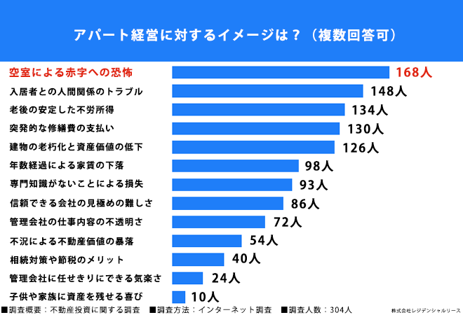 アパート経営に対するイメージ「空室による赤字への恐怖」が最多回答