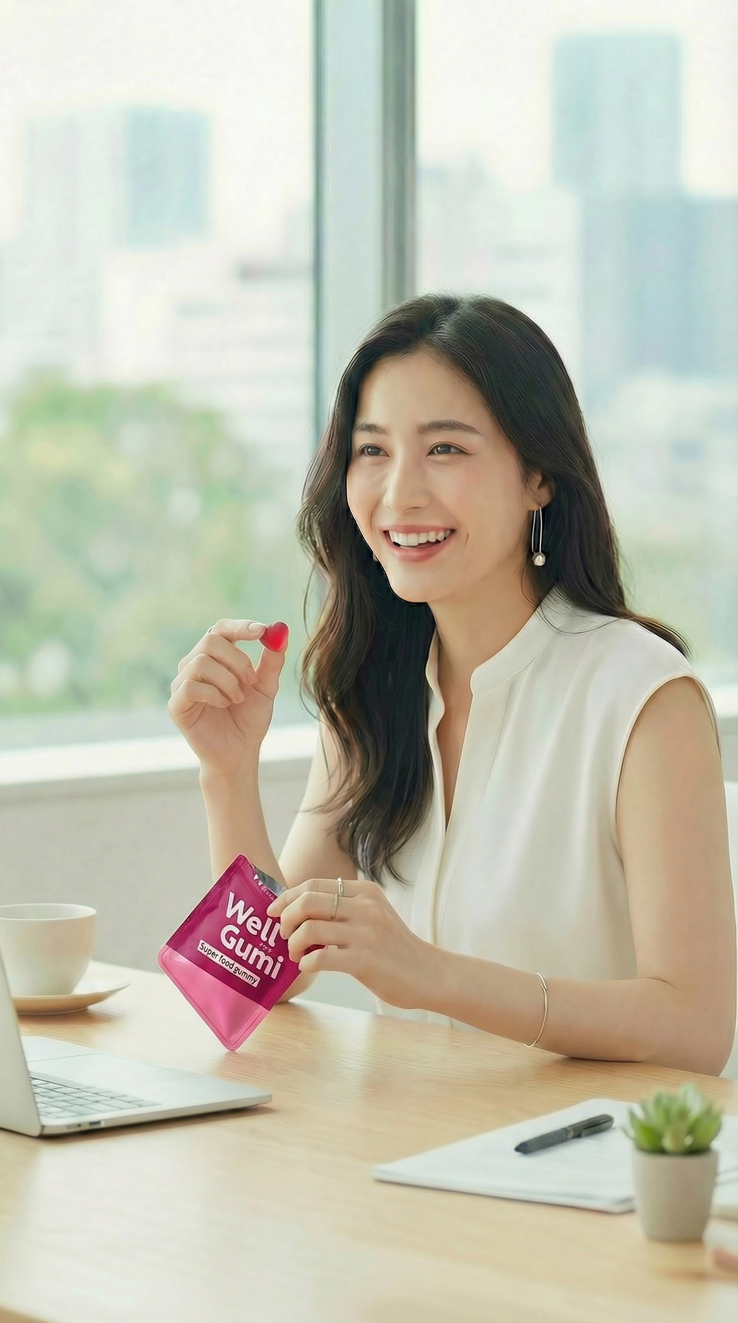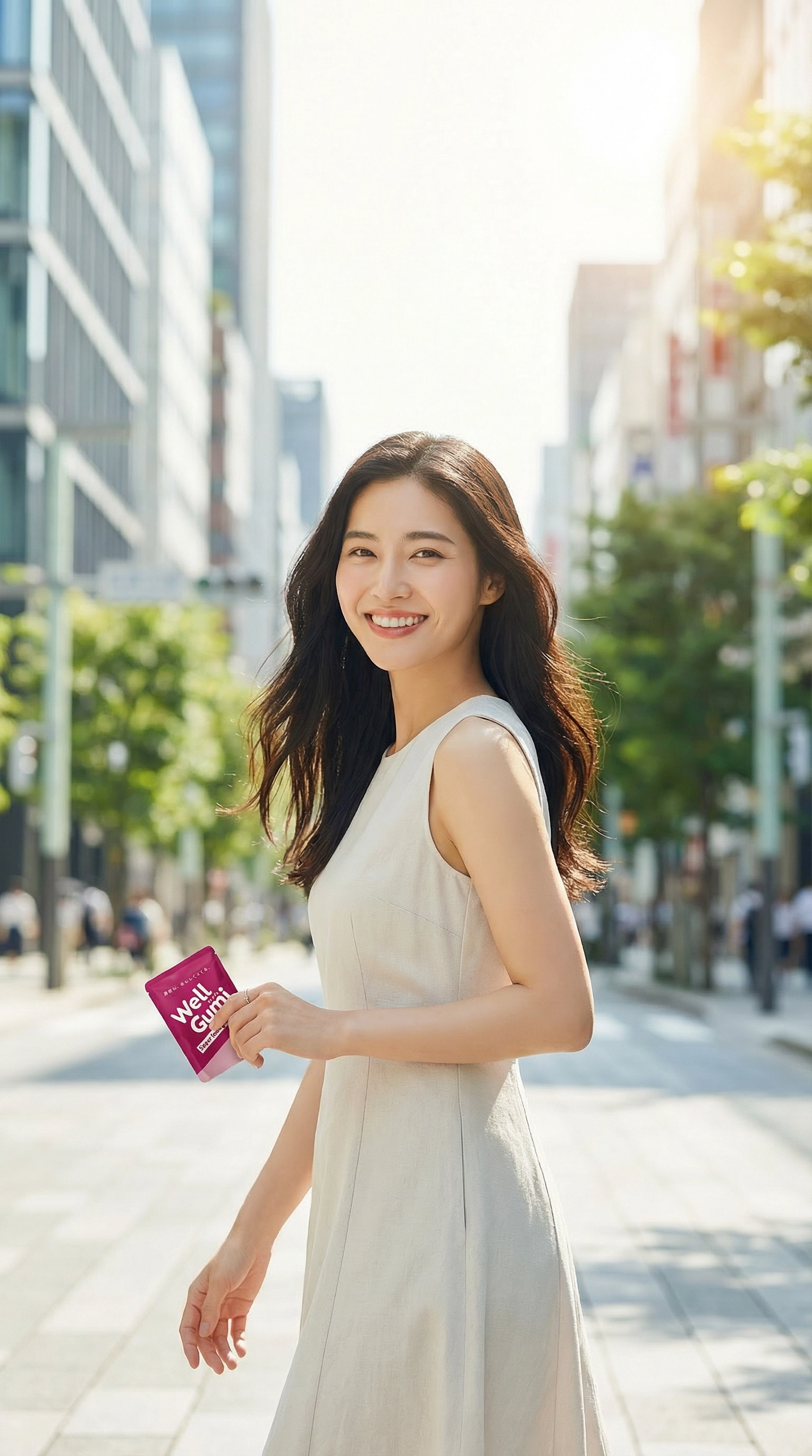さらに、1回分ずつの個包装だから、バッグにそのまま入れて持ち運べます。仕事の合間に、移動中に、外出先でも——いつでもどこでも、おいしく栄養を補給できるのがWellGumiのスタイルです。