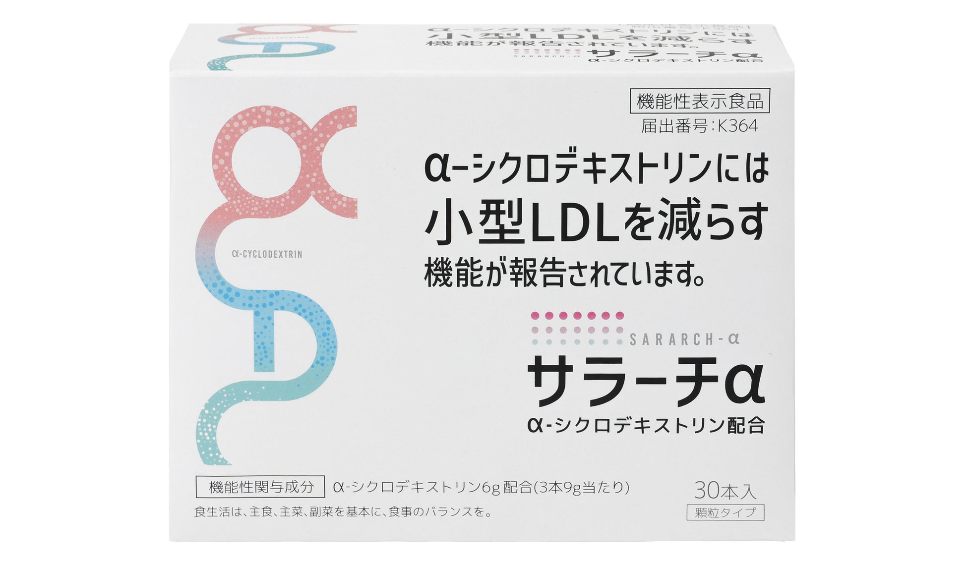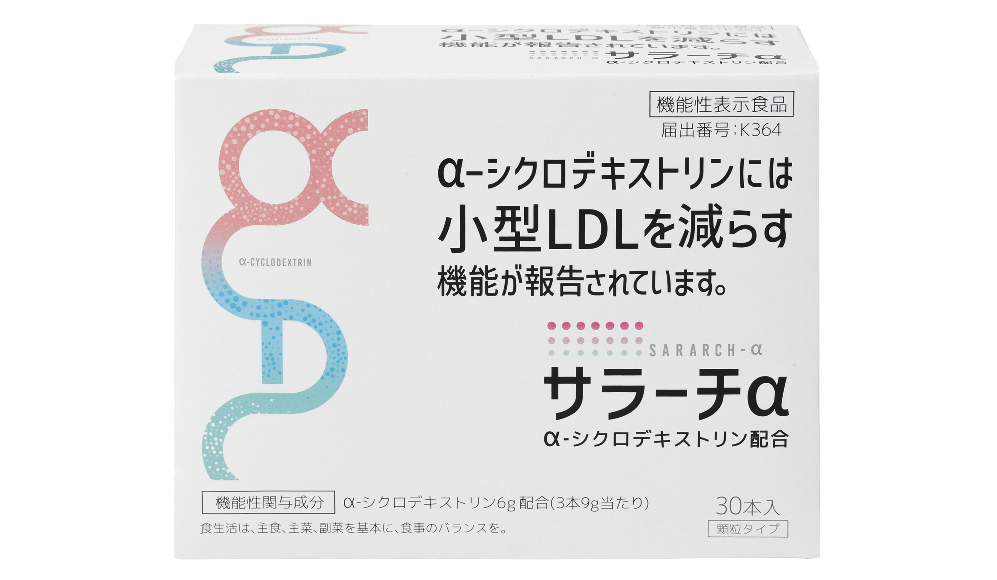 【日本初※】小型LDL(通称「超悪玉コレステロール」)を減らす新習慣!「小型LDLを減らす」機能が報告されたα-シクロデキストリンを配合した機能性表示食品『サラーチα』を新発売