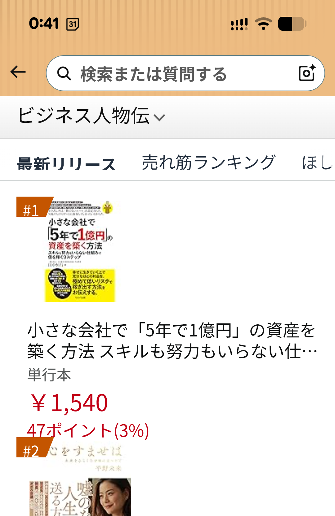 実績:Amazonランキング(ビジネス人物伝)1位獲得
