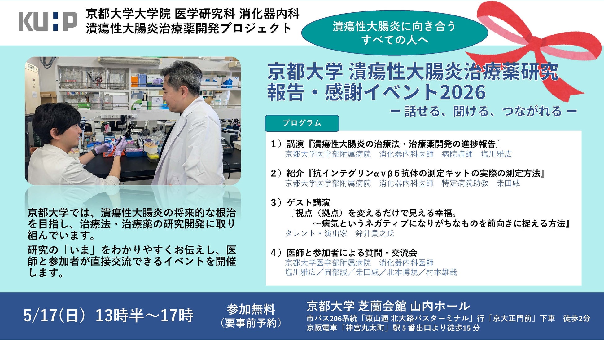 イベント名:京都大学 潰瘍性大腸炎治療薬研究 報告・感謝イベント2026