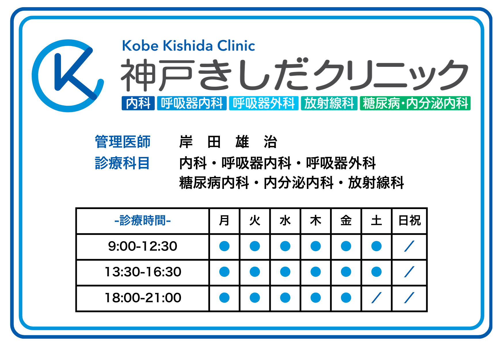 神戸市中央区の神戸きしだクリニック、呼吸器内科・糖尿病内科等の夜間診療・土曜午後診療を開始