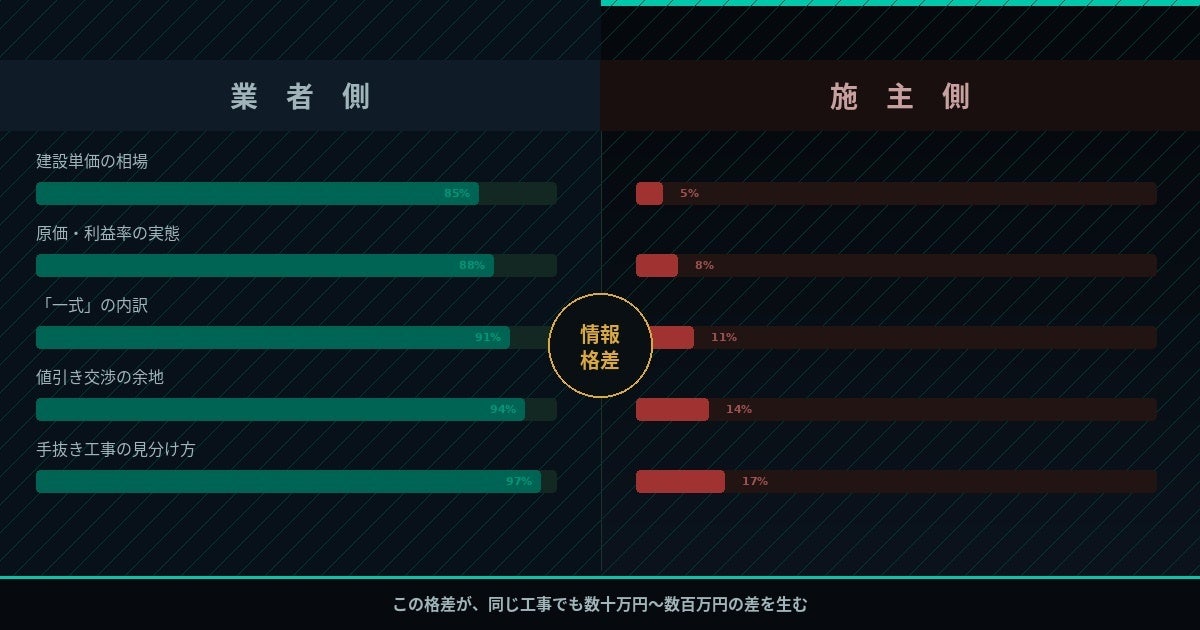 「施主が損をするのは、業者が悪いからではなく、情報格差があるからです。このサービスはその格差をなくすために作りました。」