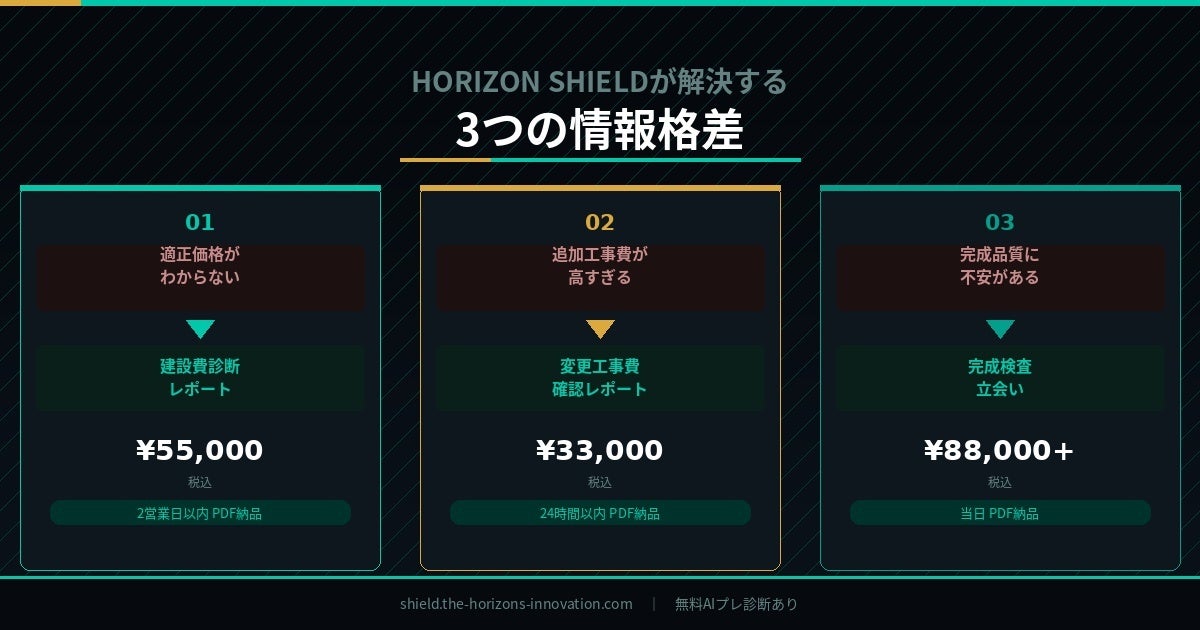 建設歴30年のプロが施主を守る AI建設費診断サービス「HORIZON SHIELD」提供開始