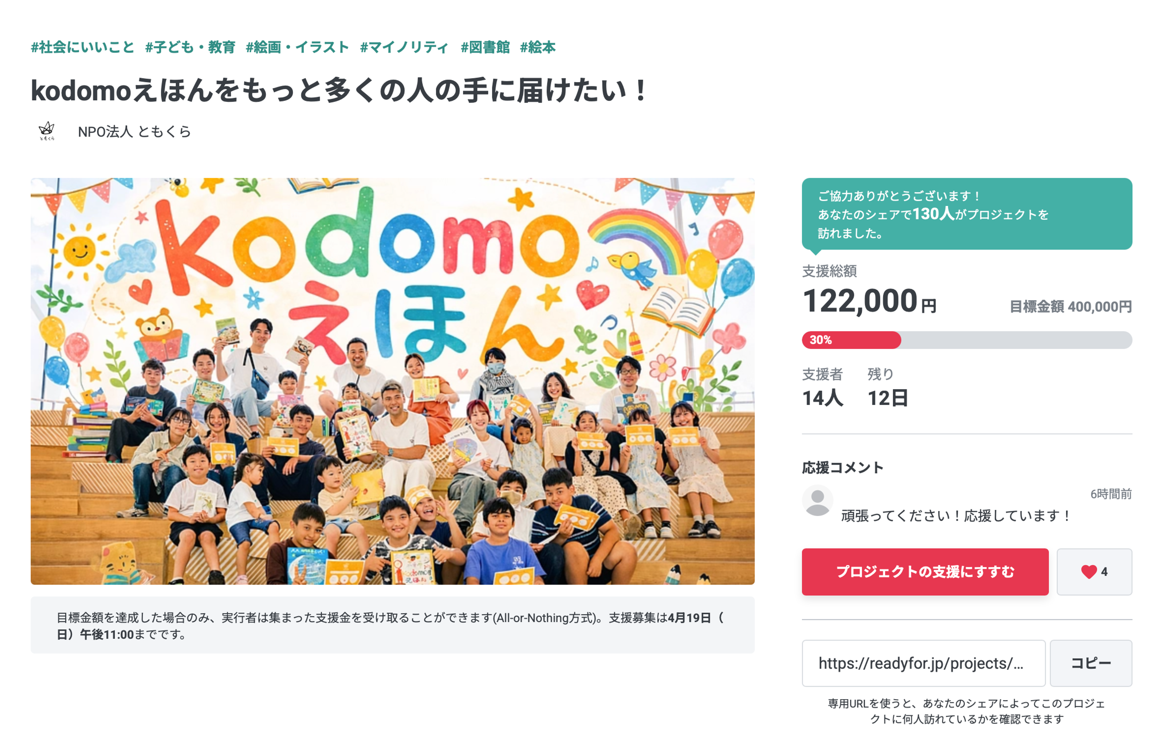 【プロジェクトページ】https://readyfor.jp/projects/kodomoehon2026
