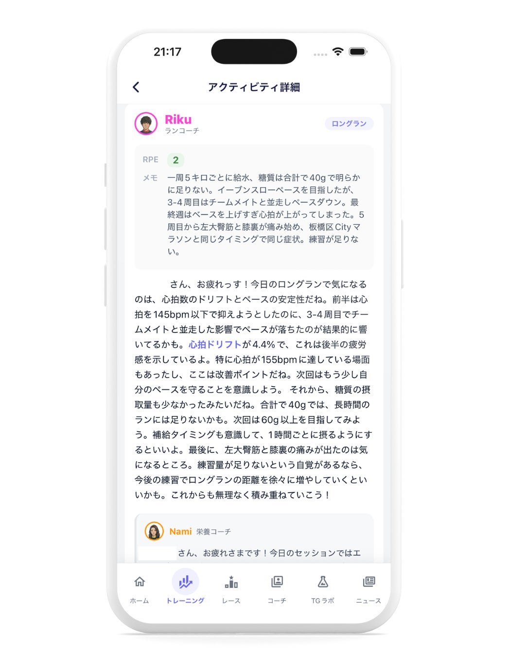 リリース前のテスト段階から、多くのポジティブな反応をいただいています。特に評価されているのは、汎用AIとは異なる「自分の状態に合わせたピンポイントのアドバイス」、トレーニング後のコーチからのフィードバックによる気づき、そして「見れば見るほど楽しい」と表現されるアプリ体験の中毒性です。「友達にも紹介した」という声や、トレーニング行動そのものが変わったという報告も寄せられています。