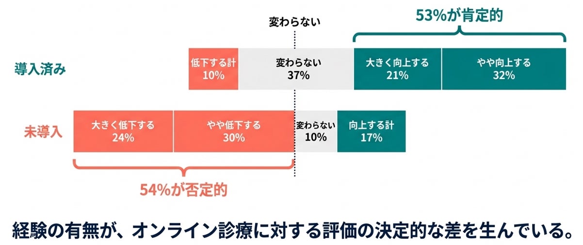 本調査において最も特徴的だったのは、オンライン診療が診療の質に与える影響についての見解です。