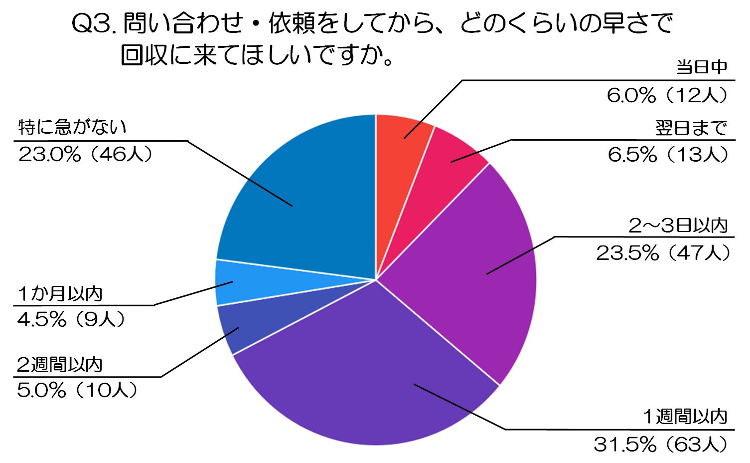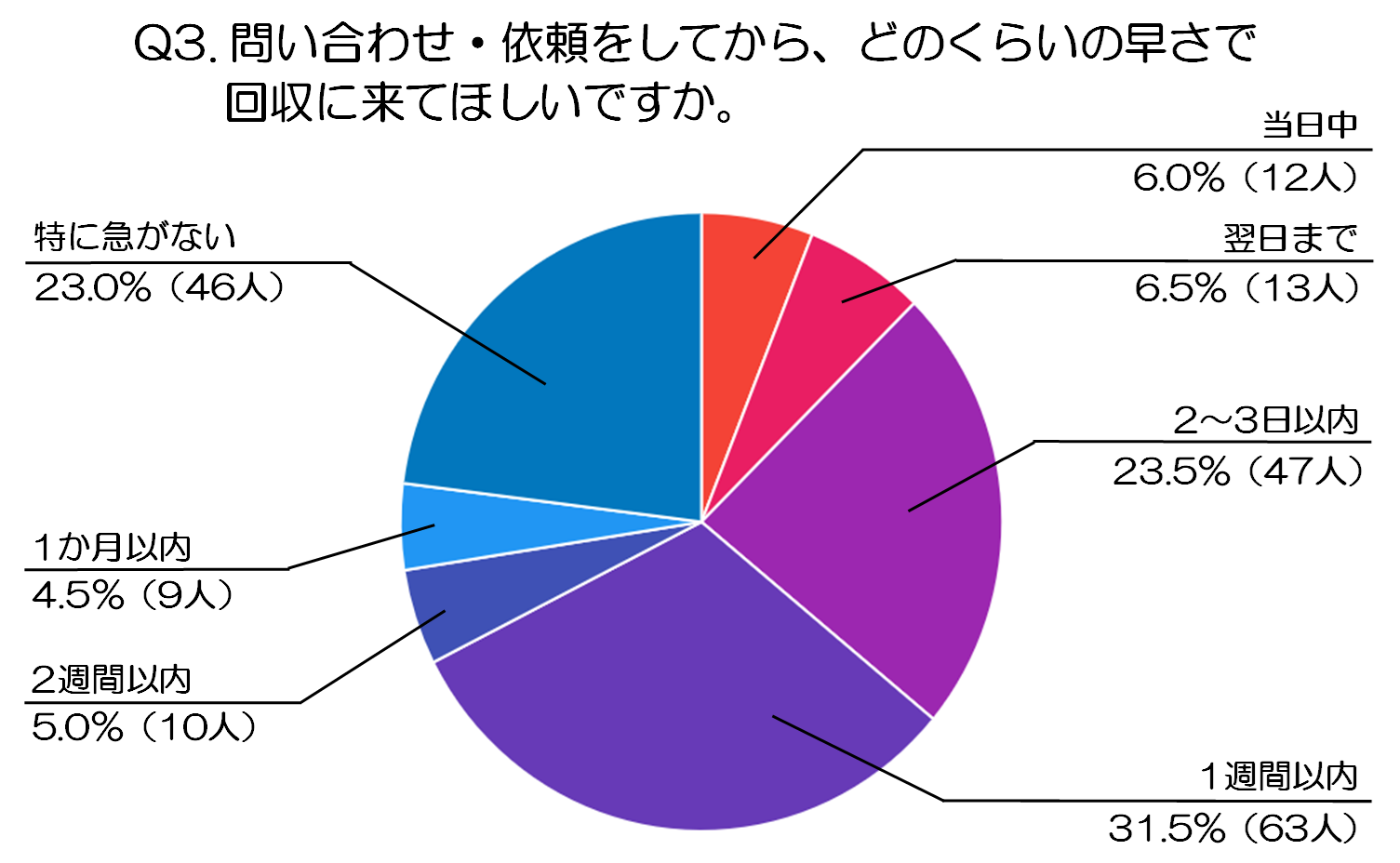 Q3.問い合わせ・依頼をしてから、どのくらいの早さで回収に来てほしいですか。