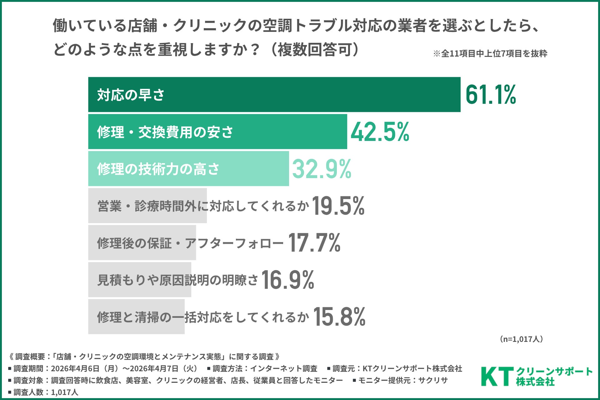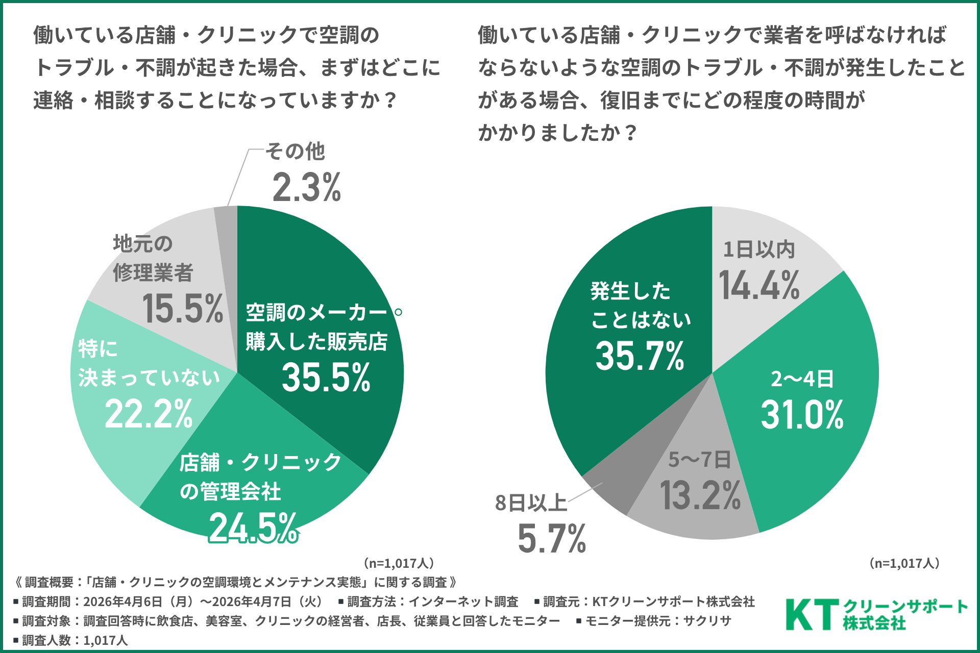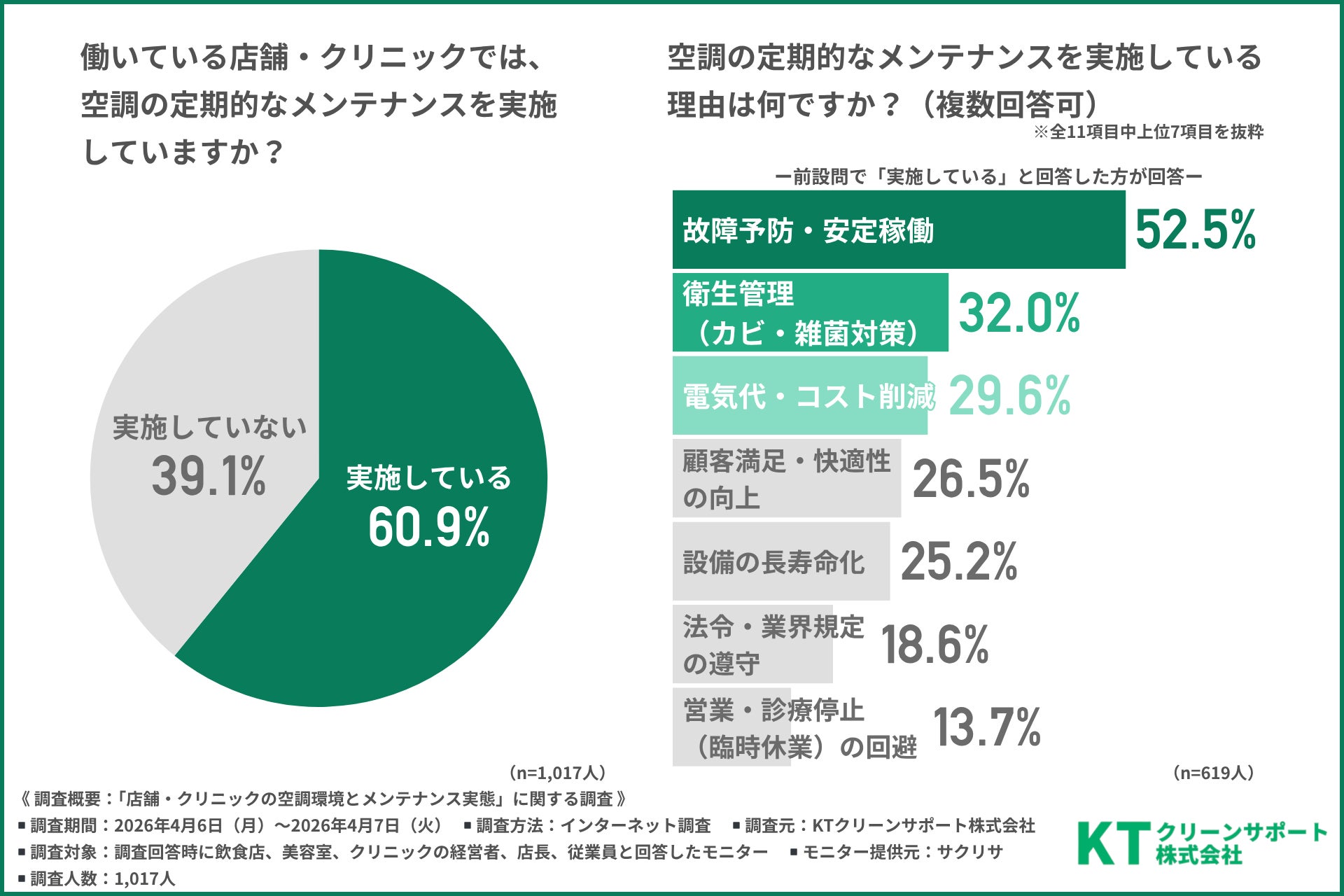 今回、「店舗・クリニックの空調環境とメンテナンス実態」に関する調査を実施したのはKTクリーンサポート株式会社(https://www.kt-clean-inc.co.jp/)です。
