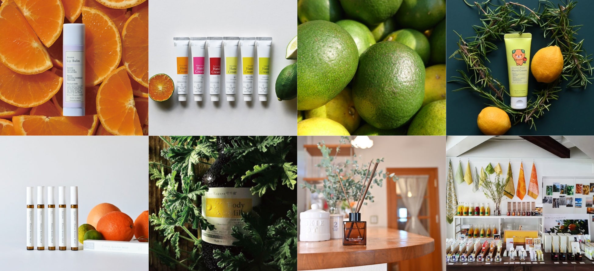 主な取扱商品: エッセンシャルオイル、シトラスアロマミスト、ハンドクリーム、リップバーム、バスパウダー、ハンドソープ(詰め替え用)ほか