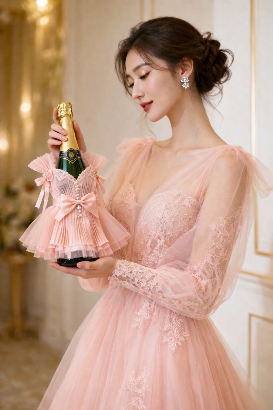 「シャンパンドール」は、シャンパンボトルにドレスデザインを施した装飾型プロダクトで、
