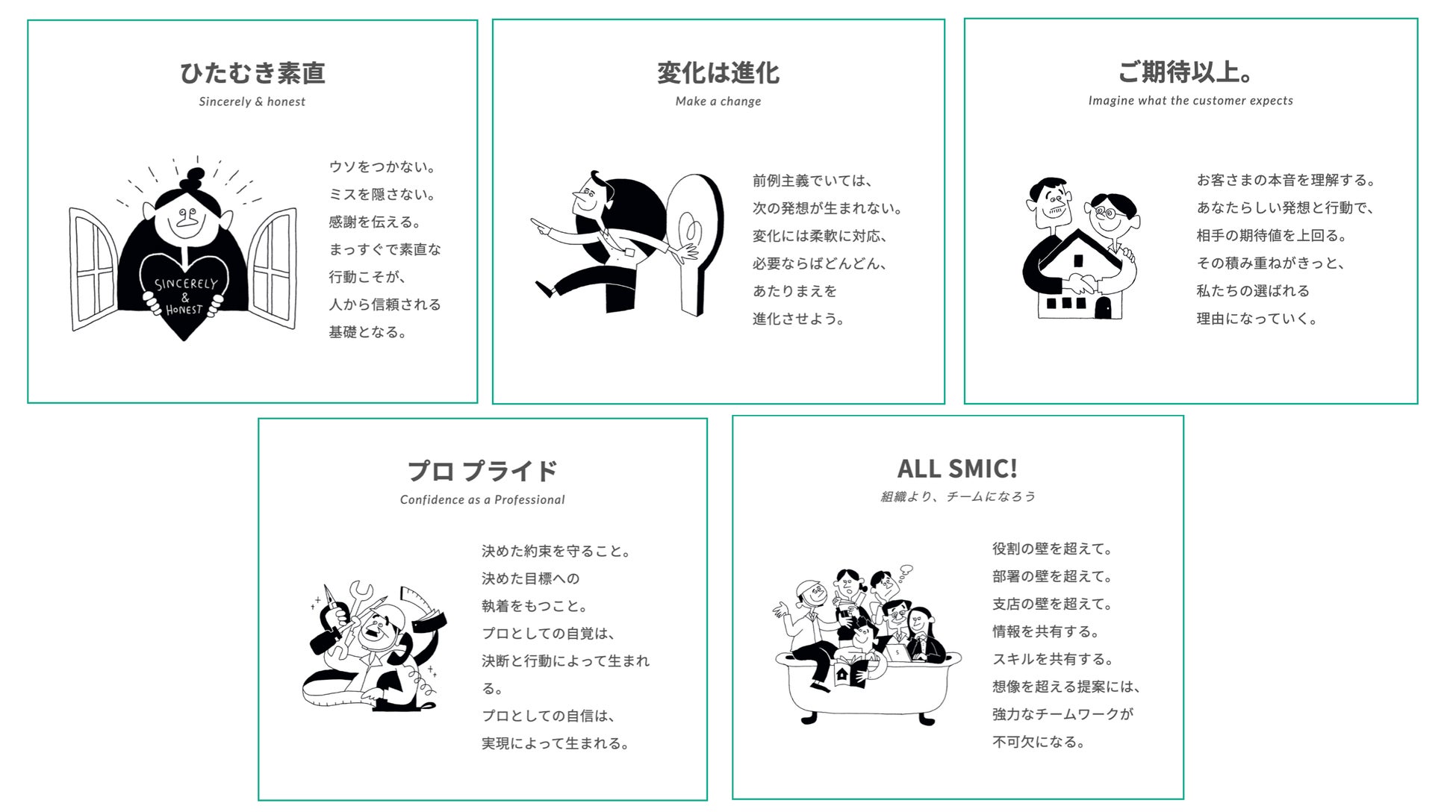 スミックは、TOTAL HOUSING SMICとして「住まい」に関するあらゆるニーズに応える企業です。私たちは建物というハード面だけでなく、そこに住む人の想いや、家づくりに携わる全ての人の「見えない感謝」を大切にし、快適な暮らしの実現に貢献してまいります。