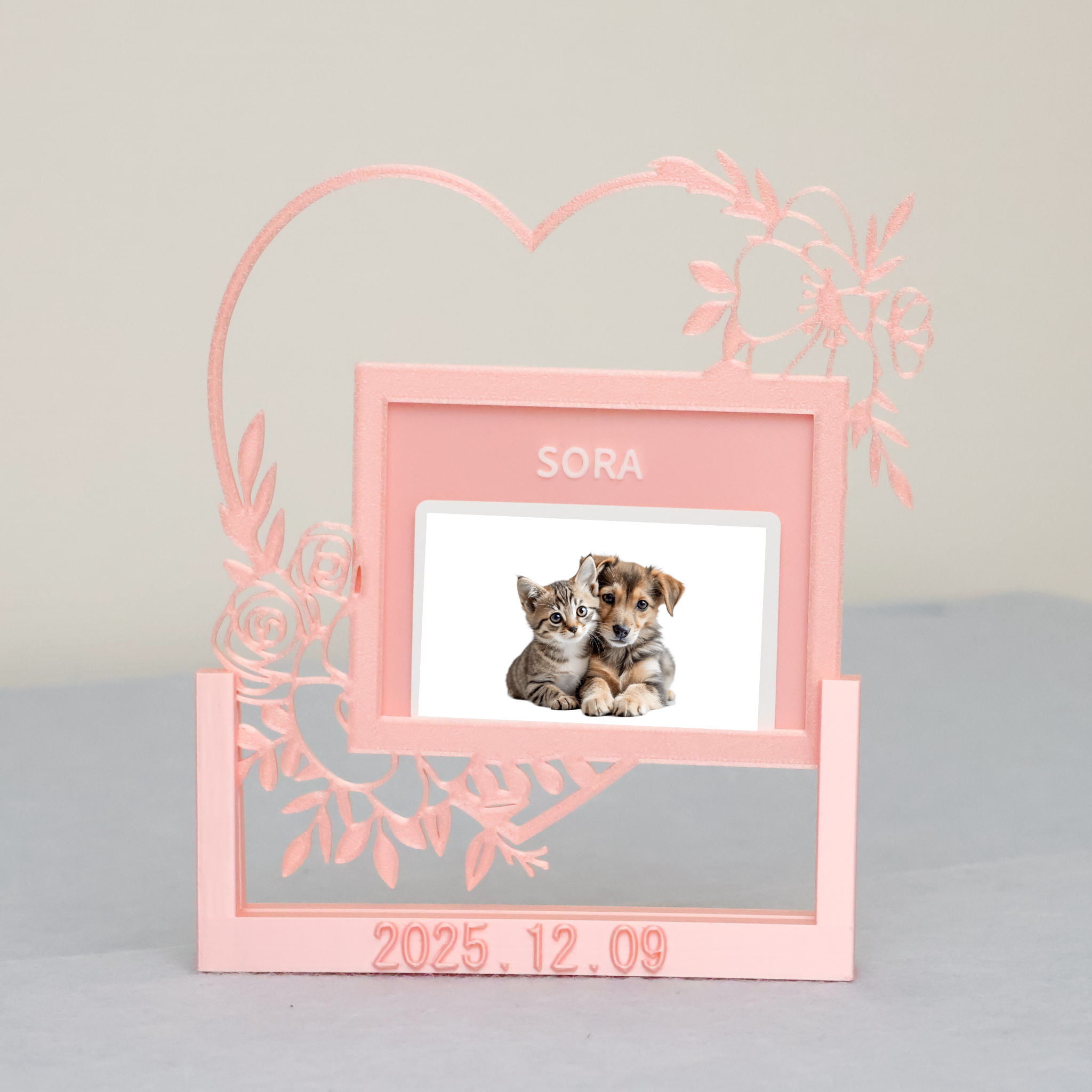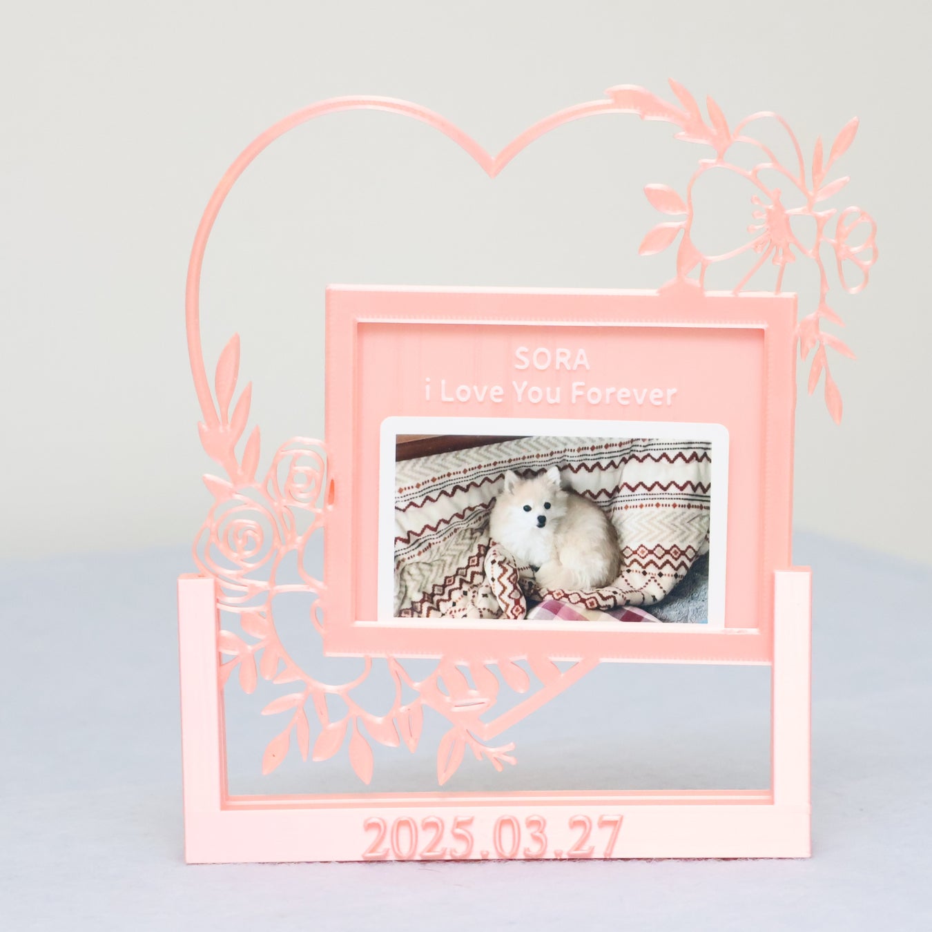 【1日5組限定】世界に一つだけの「うちの子専用」オリジナルフォトフレームが新発売 愛犬・愛猫の名前やメッセージを立体的に刻印。スマホの写真が特別な宝物に