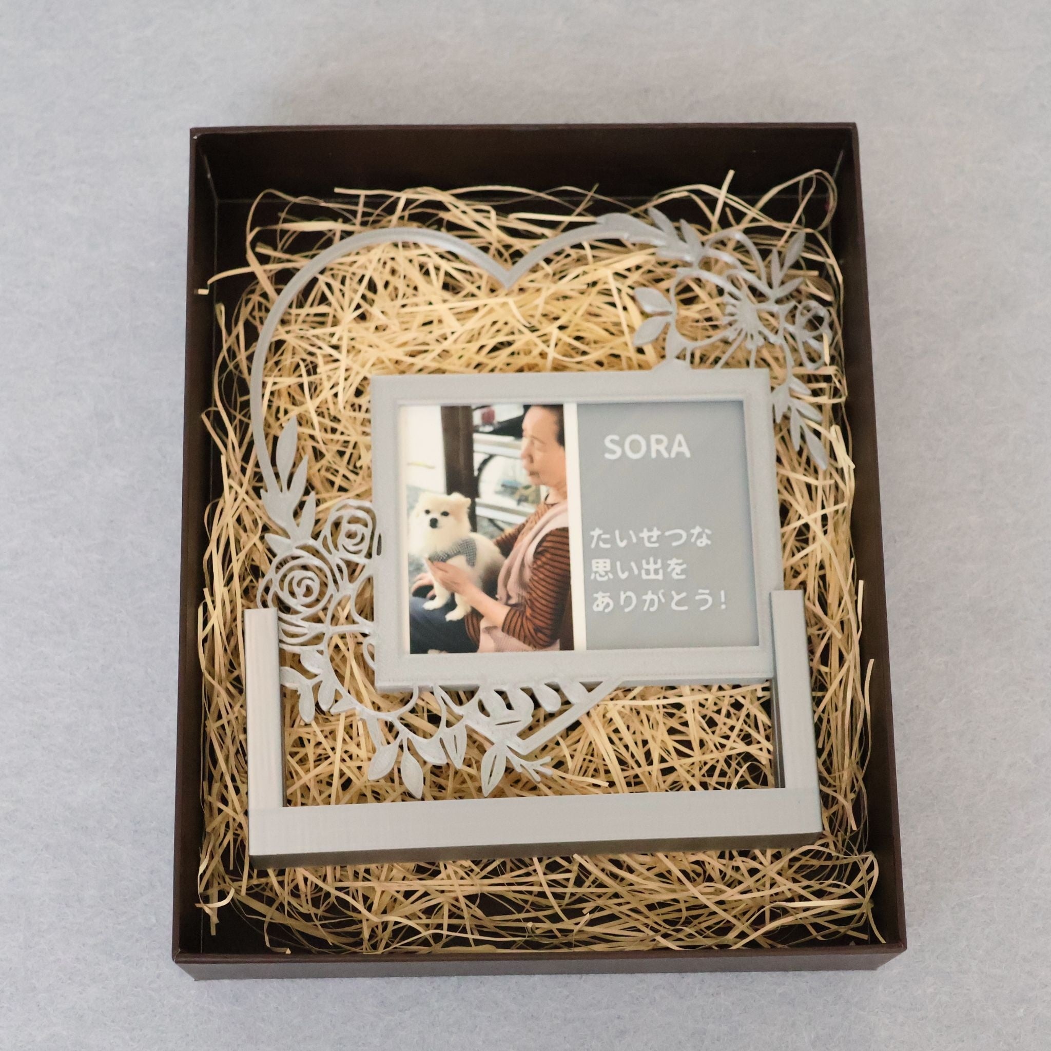 誕生日や記念日のお祝いとしてはもちろん、お空へ旅立ったペットとの思い出を飾るメモリアルグッズ(ペットロスケア)としても寄り添える商品を目指しています。