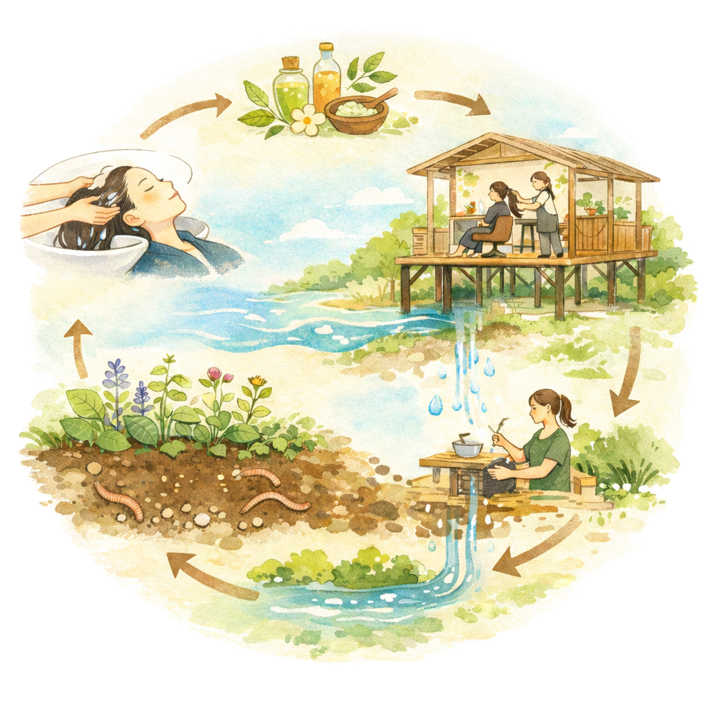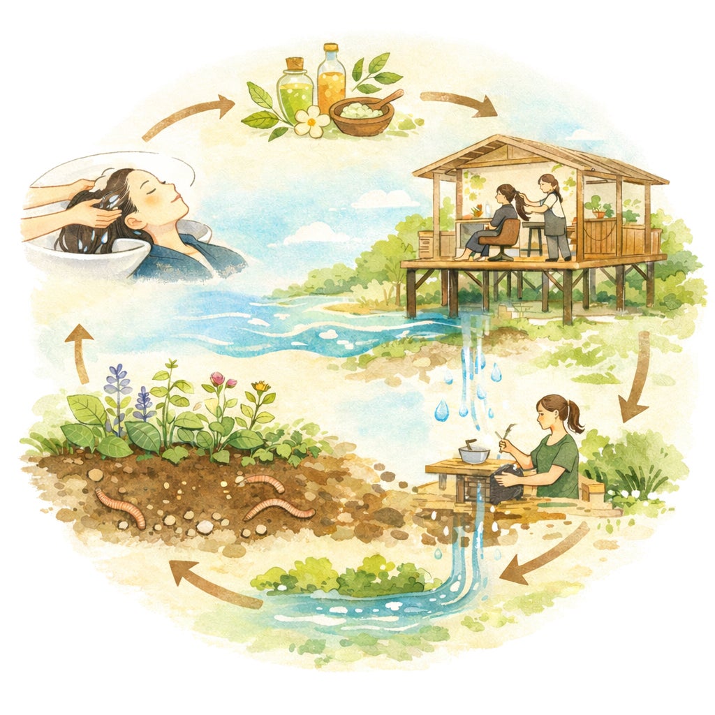 これまで見えなかった「水の行き先」を感じることで、美容という行為そのものを、自然の循環の中で捉え直す場をつくります。