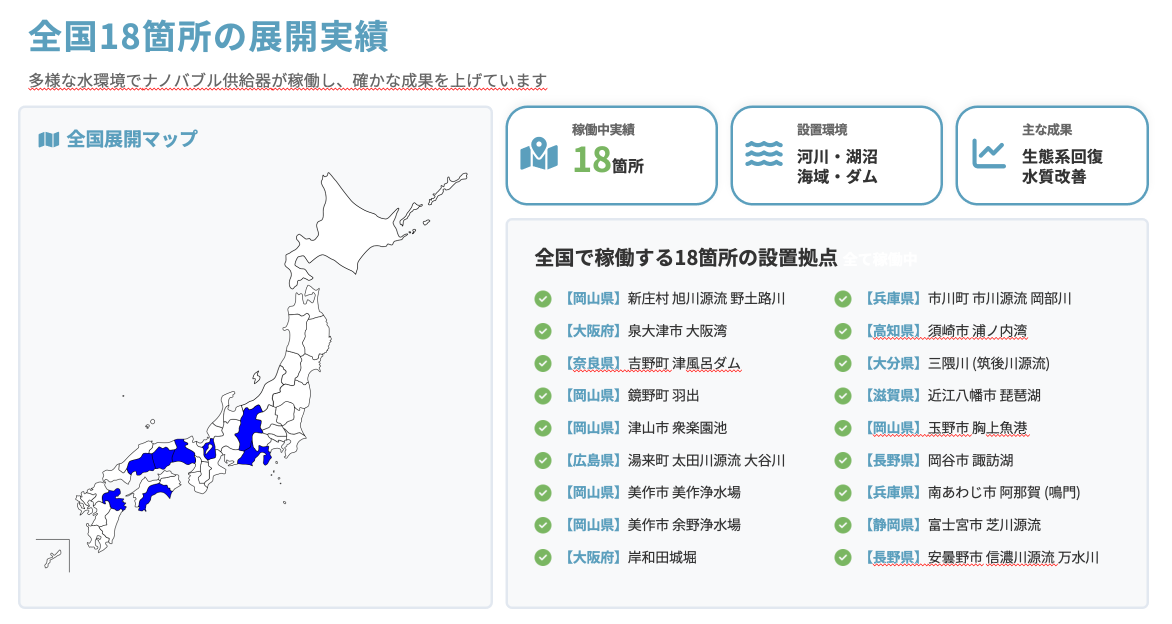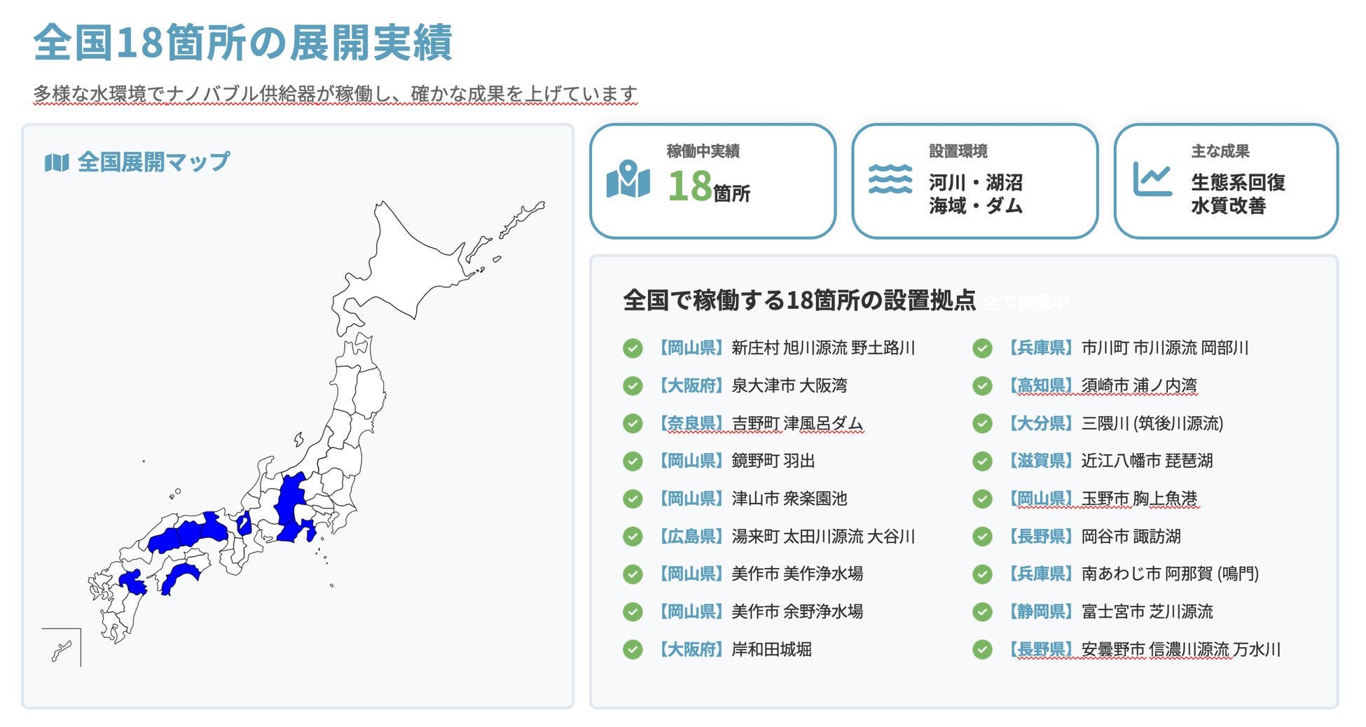 事業内容: ナノバブル発生型水質浄化装置(BENTENシリーズ)の開発・設置、「生態系復活プロジェクト」の推進