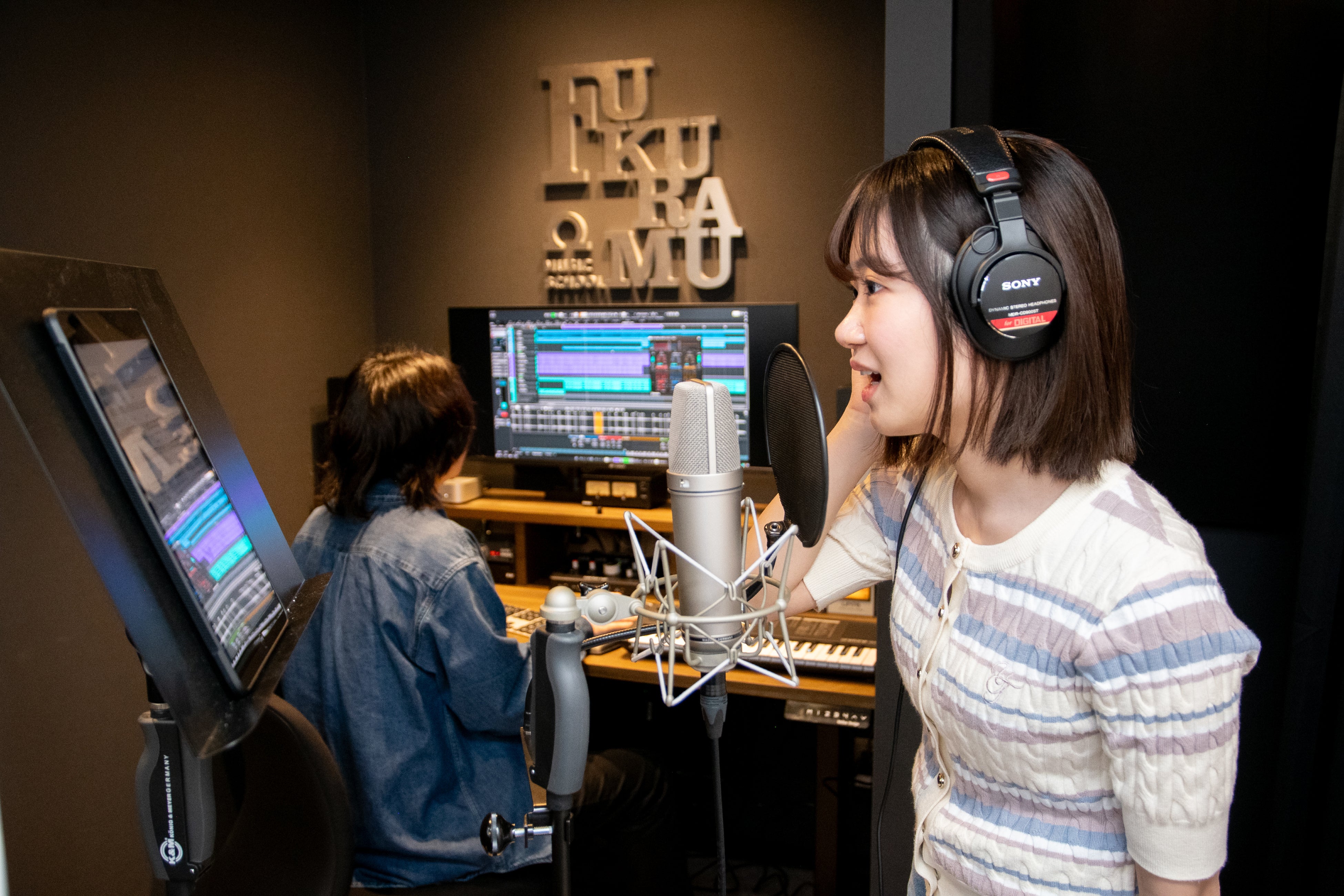 FUKURAMU MUSIC SCHOOLでは、本格的なレコーディング機材を使ってレコーディングすることができます。レッスンの中で気軽にレコーディングすることができます。