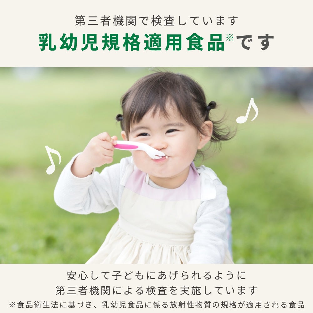 子ども用食品の基準をクリアした、乳幼児規格適用食品(食品衛生法に基づき、乳幼児食品に係る放射性物質の規格が適用される食品)です。