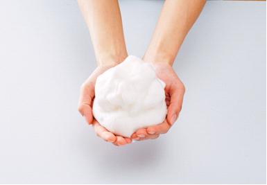 濃密な泡を作り、泡で全身を優しくマッサージしながら、つつむように洗います。
