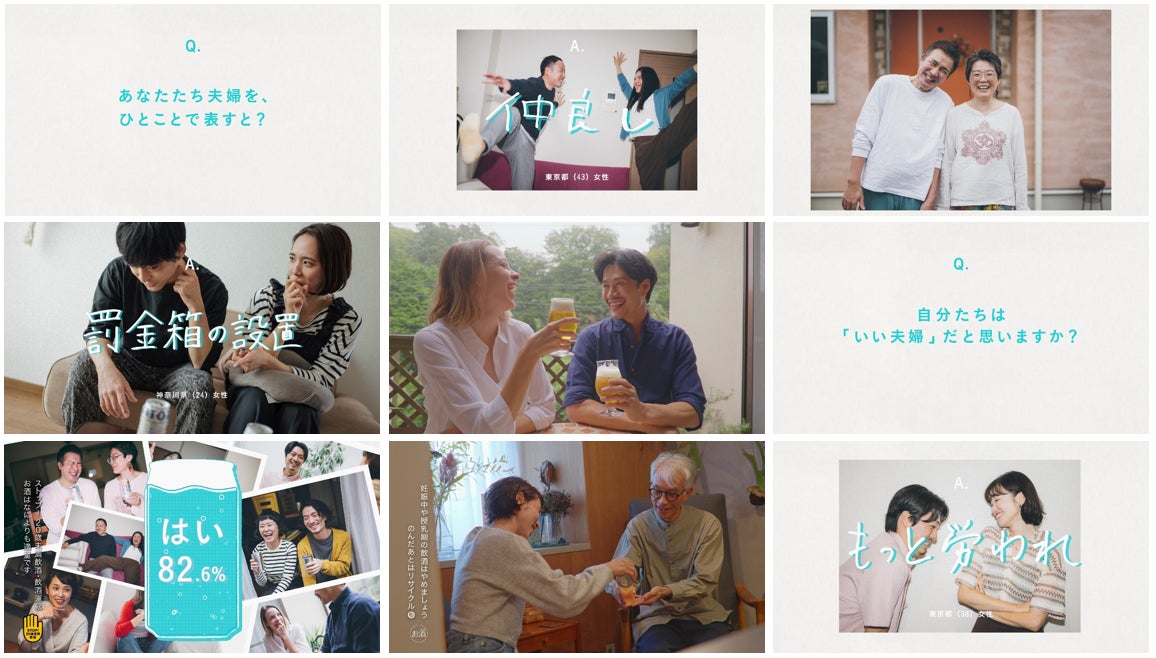 この22の質問の調査結果を基にした、実際の夫婦たちが出演する特別動画を11月21日(金)より、公式Xおよび公式YouTube上にて公開します。ベランダでまったり過ごす様子や、仲睦まじい晩酌の瞬間など、「いちばんの飲み友達はあなたです。」というメッセージに込めた、人生のパートナーへの愛や夫婦という関係の尊さを思い起こさせる映像となっています。