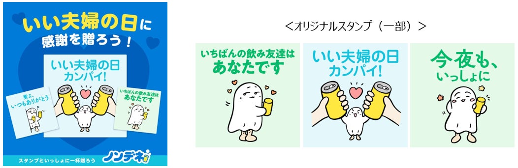 また、当社が提供するソーシャルギフトサービス「ノンデネ」で使える「いい夫婦の日」オリジナルスタンプを制作。今回の調査の回答から生まれたスタンプも含めた展開を予定しています。