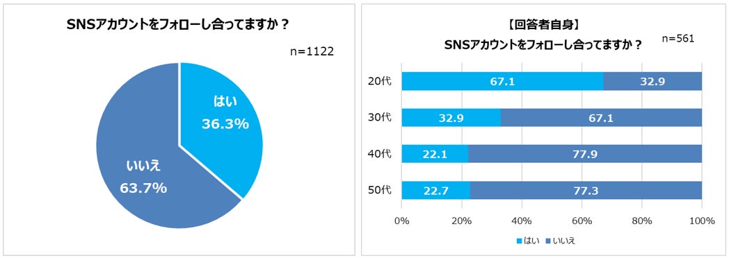 ――夫婦のSNS相互フォロー率は36.3%。一方、20代の約7割はフォローし合っている