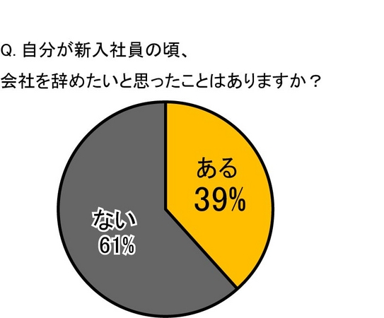会社を辞めたいと思ったことがあるか」を聞いたところ、39%と3人に1人以上が