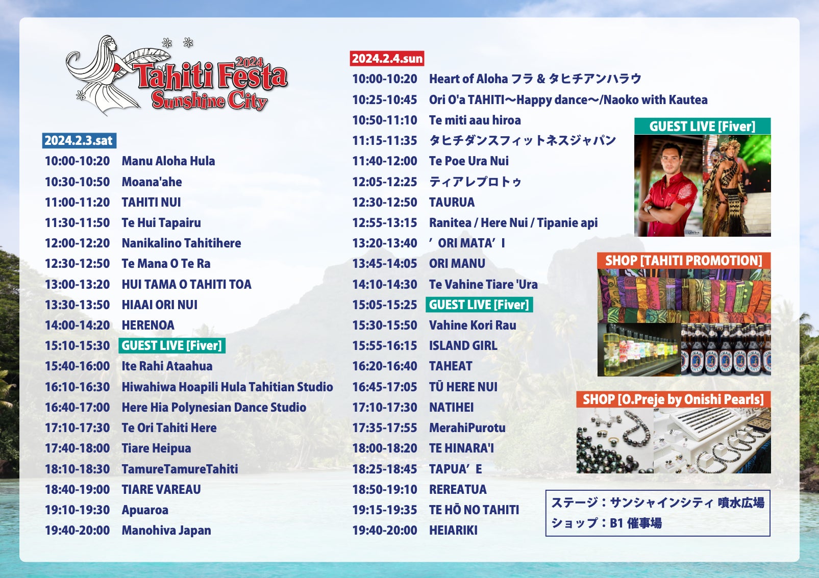 日本国内においてタヒチ全般のプロモーションを行っている株式会社タヒチプロモーション(代表取締役:大石暢)は、2024年2月3日(土)~4日(日)の2日間、「Tahiti Festa 2024 Sunshine City」を開催します。