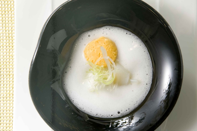 “イヴォワール・ショコラ”見立てにキャヴィアを添えて ほうれん草のクーリーと共に