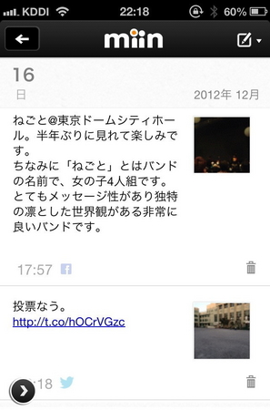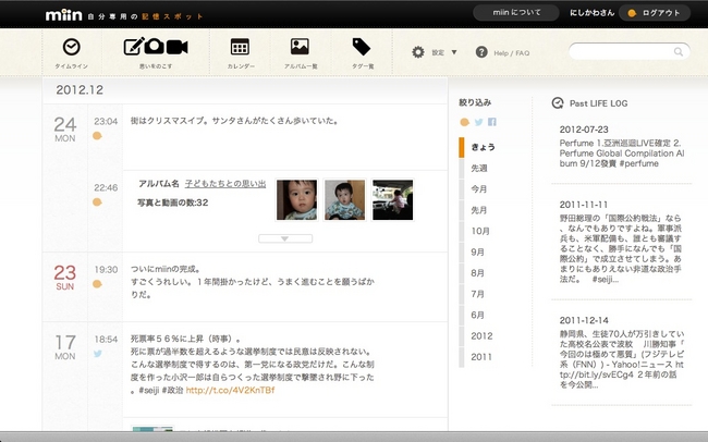 miinは『日々の体験・実感』をクラウド上に残していく新しいライフログサービスです。