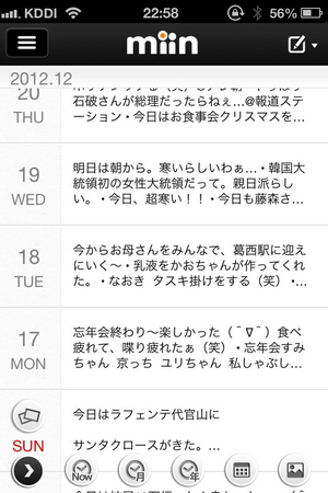 ▼miin,Twitter,Facebookが同じタイムライン上で閲覧可能