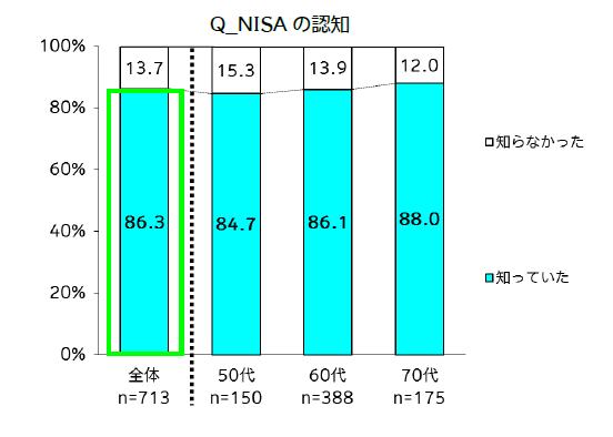 今回の調査対象であるシニア(50~70代)の認知率は85~88%に上り、大多数がすでにNISAを認知しているといえます。