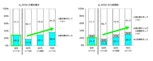 アンケートの後半ではNISAの資料請求や口座開設をしたかどうかを聴取しました。