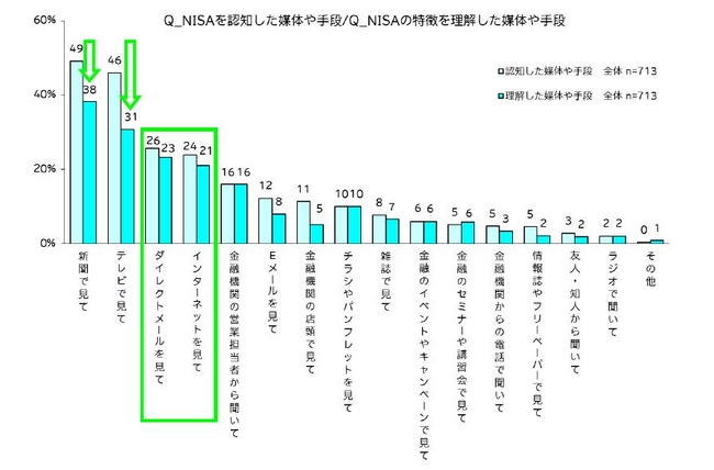 その意味では、上記の「ダイレクトメール/インターネット」が、NISAの理解の底上げに有効な媒体・手段の候補に挙がってきます。