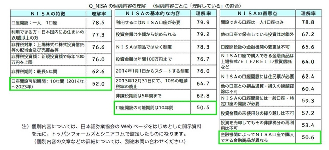 - ただし、それらの表立って見られるポジティブな反応の裏には、NISAの特徴や基本的な内容、留意点などの理解が不十分なことが判明しました。