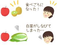 反対に、まだ熟していないキウイや柿をりんごや桃などと一緒に保存すると、通常より早く熟して食べごろになるので、これを上手に活用するのも賢い知恵です。