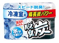 冷凍室でも凍らない炭ゼリーと炭シートでスピード脱臭。氷などへのニオイ移りを防ぎます。