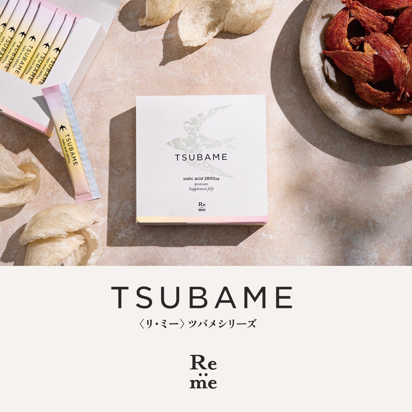 Re:me TSUBAMEシリーズは、天然アナツバメの巣に含まれるシアル酸を規格化し、1本あたり※2800μg配合。シアル酸配合量を明確にしたサプリメントゼリーです。